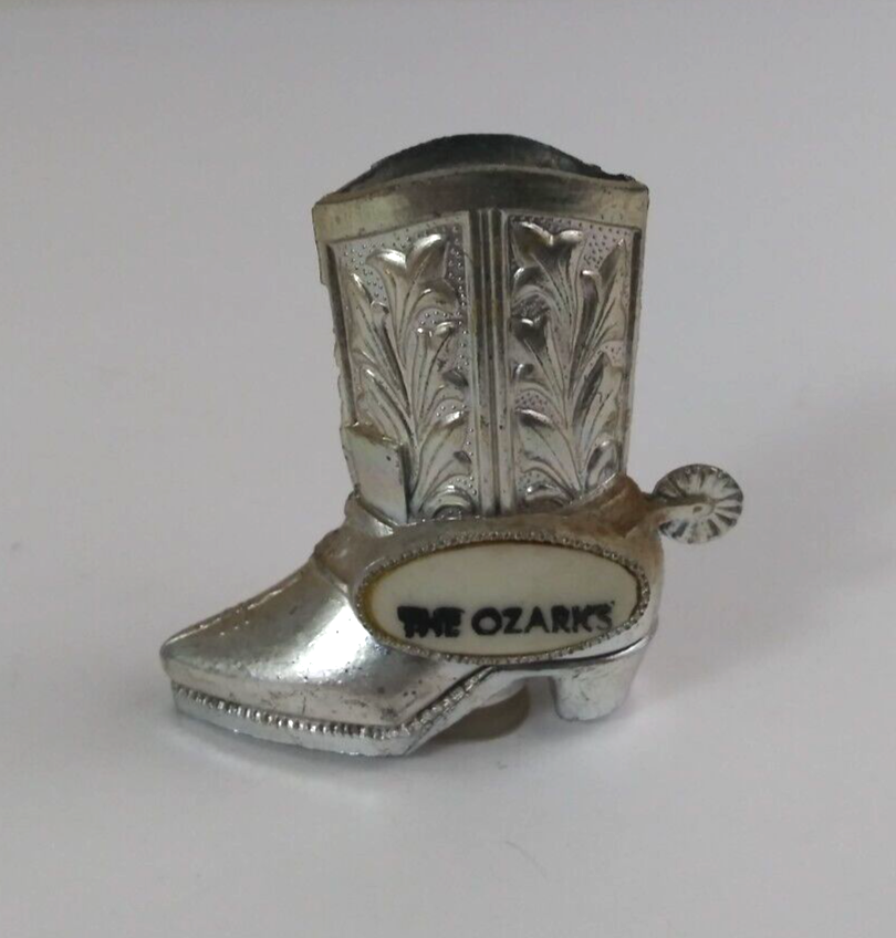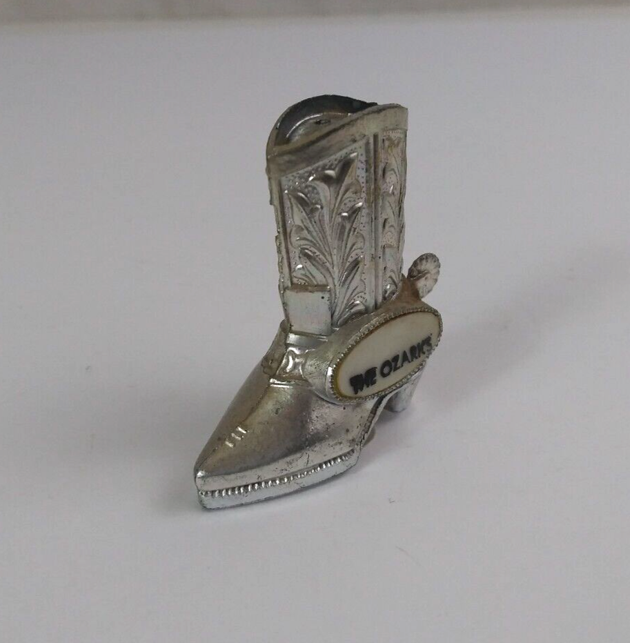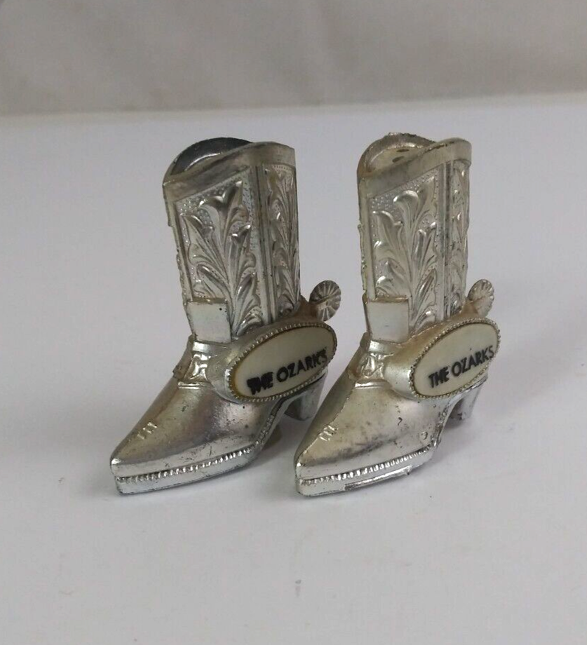 Vintage The Ozarks Silver Cowboy Boots Souvenir 2" Salt & Pepper Shakers