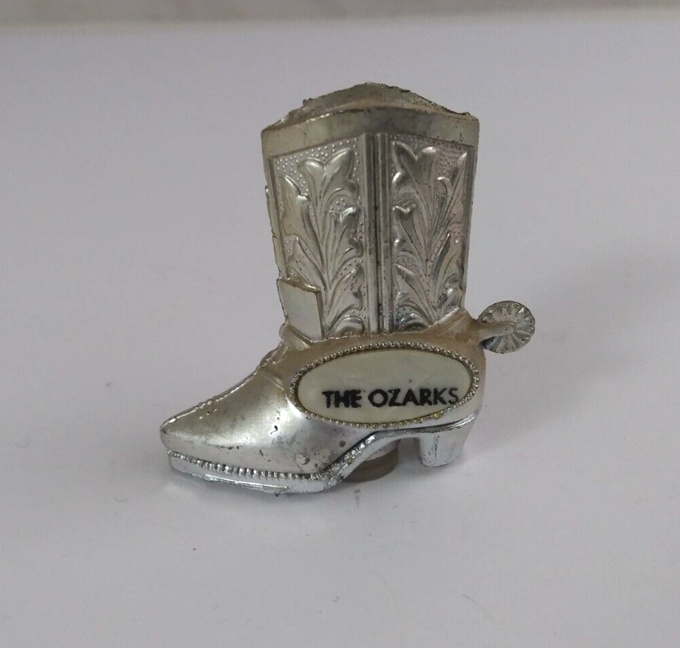 This is for a Vintage The Ozarks Silver Cowboy Boots Souvenir 2" Salt Pepper Shakers.
