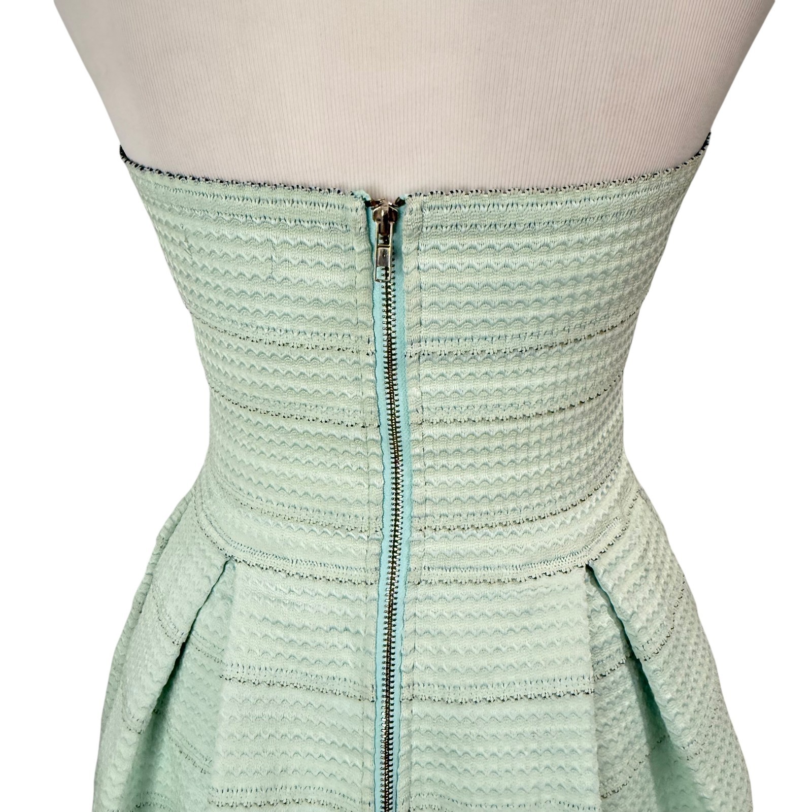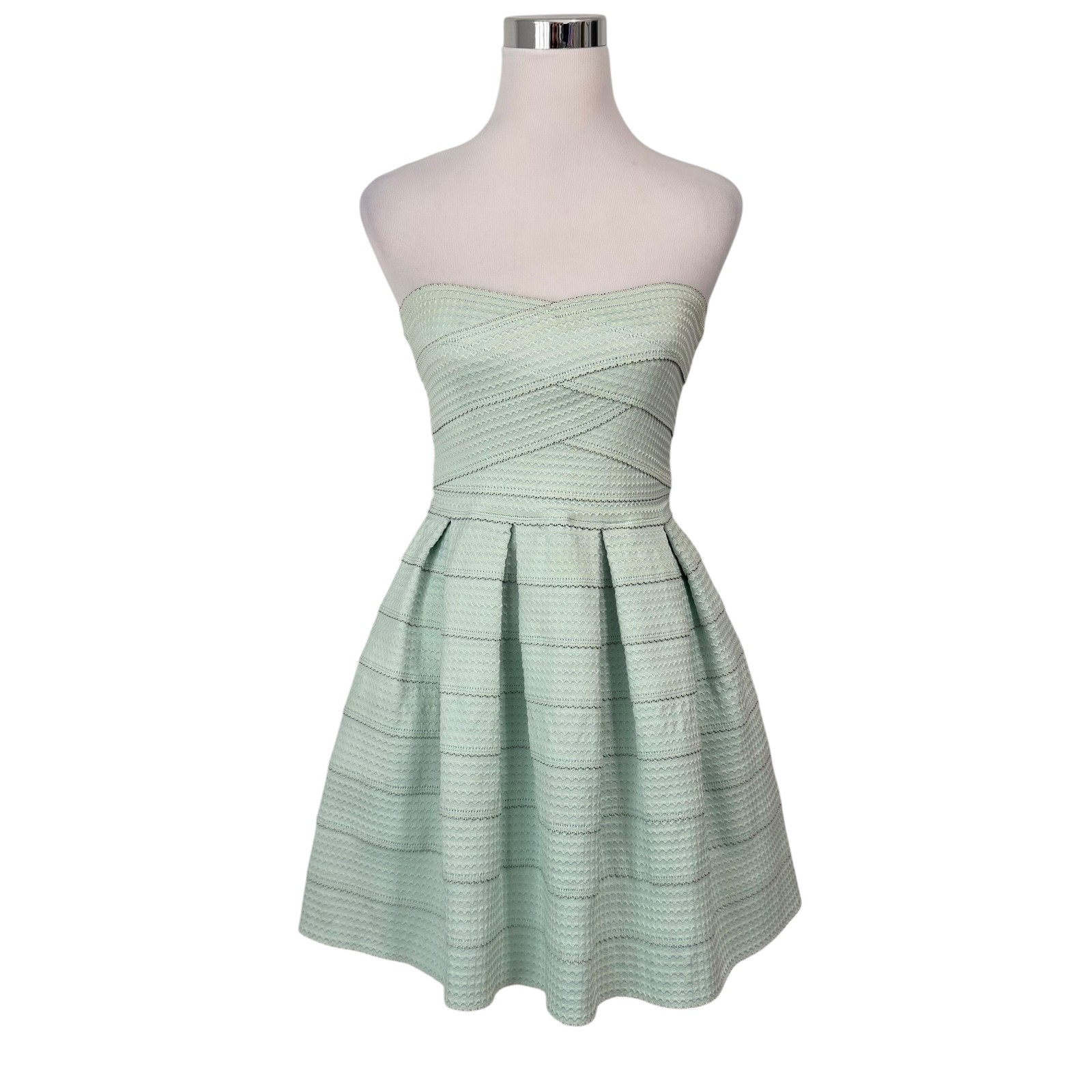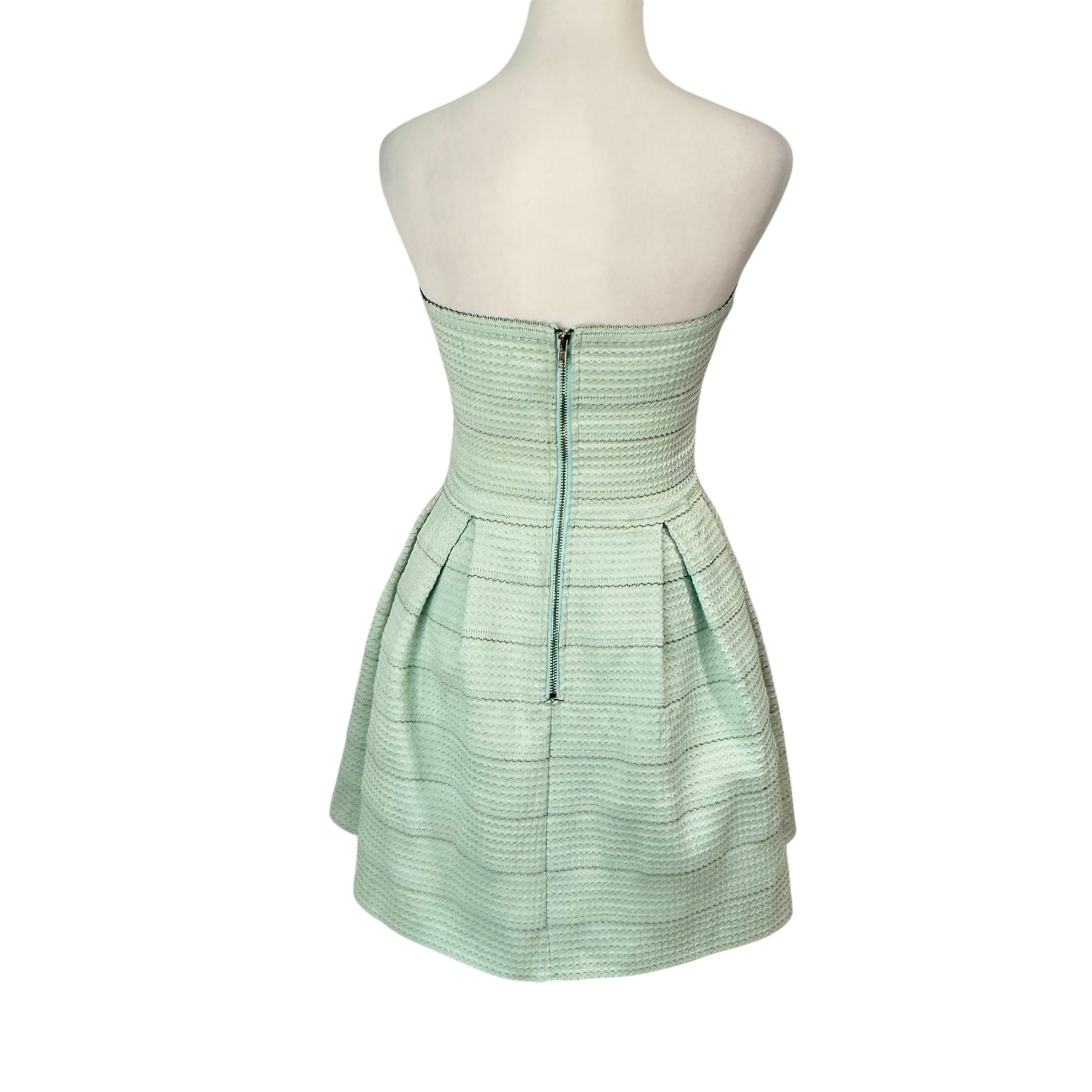 Jun Ivy Dress Womens Medium Mint Green Strapless Textured Fit Flare Pleated Mini