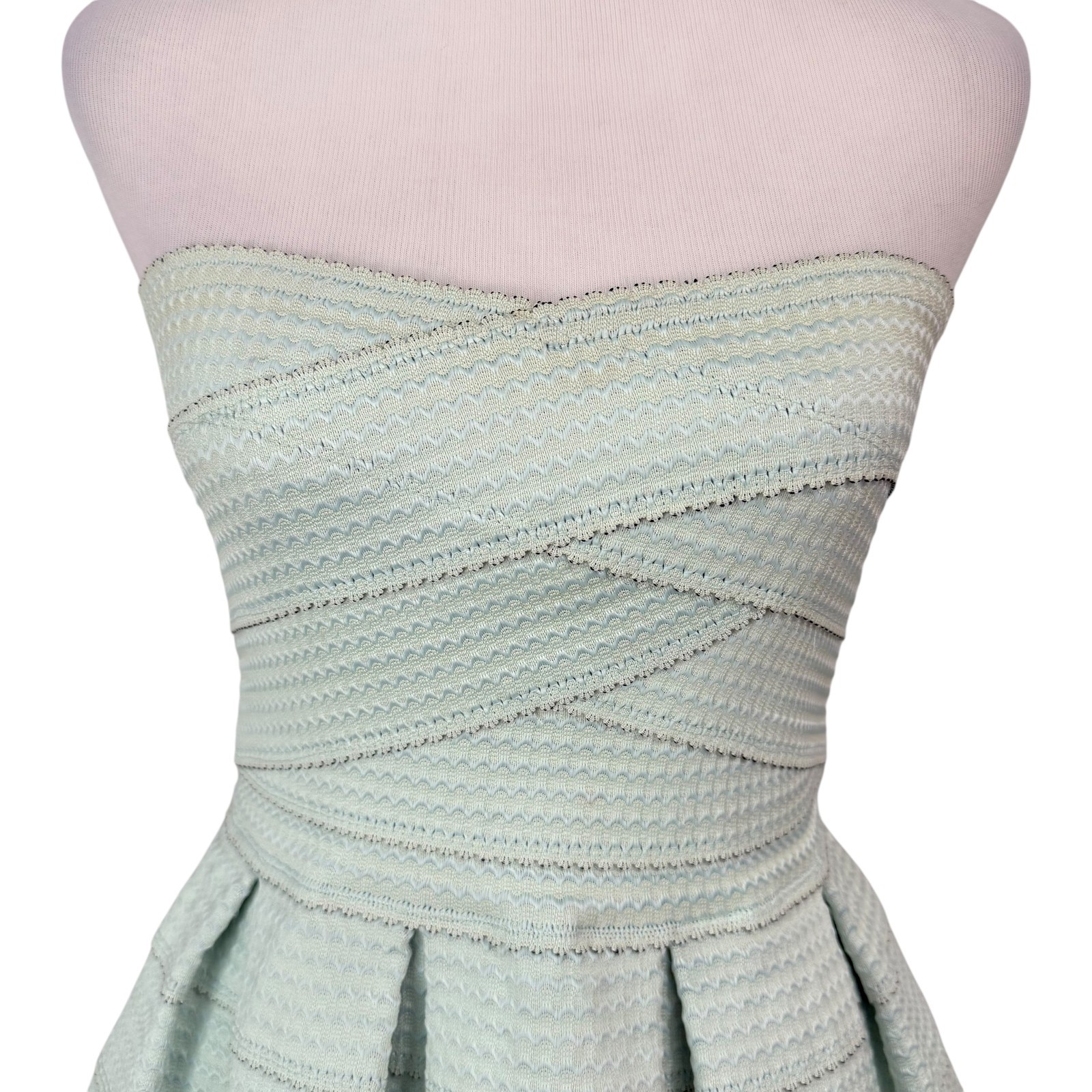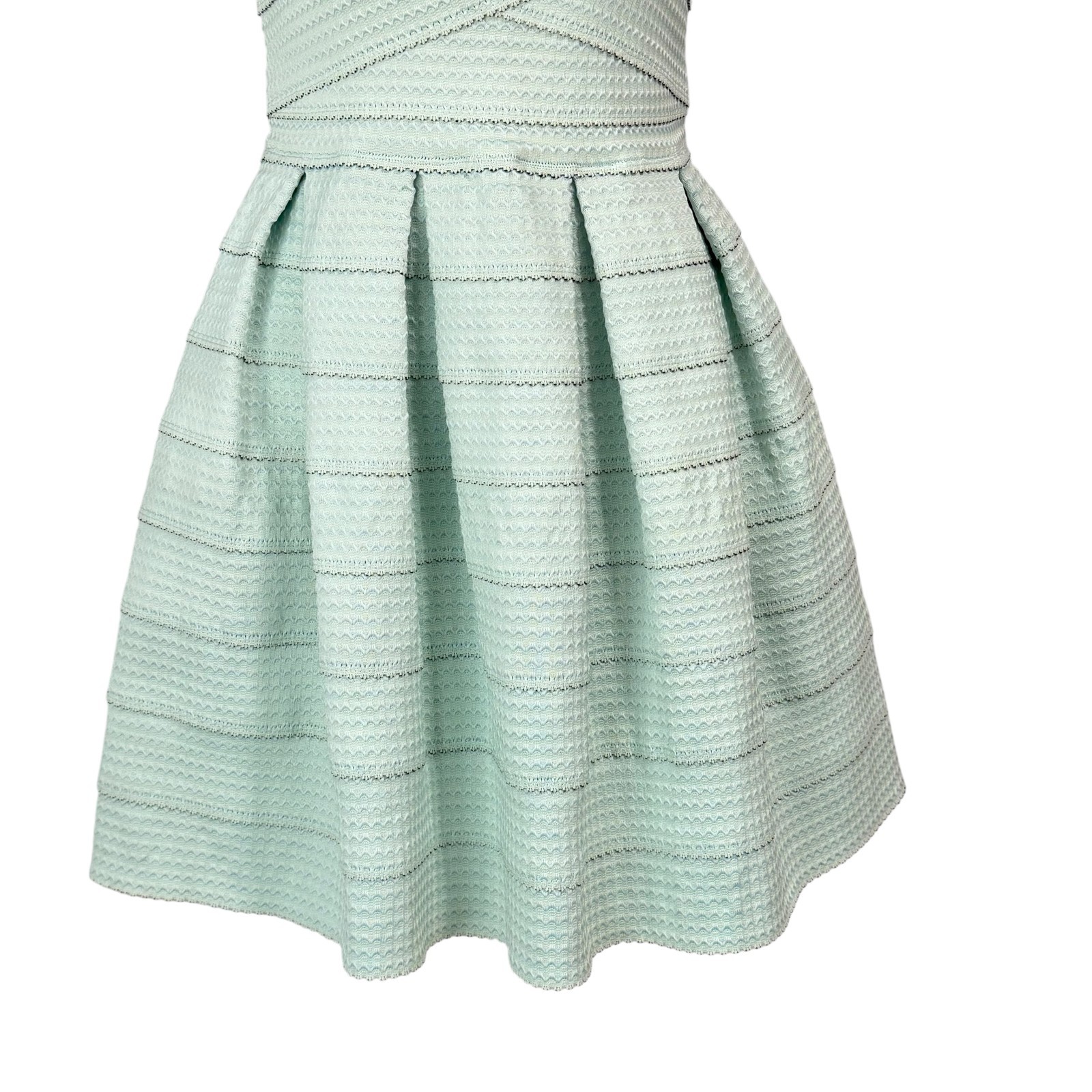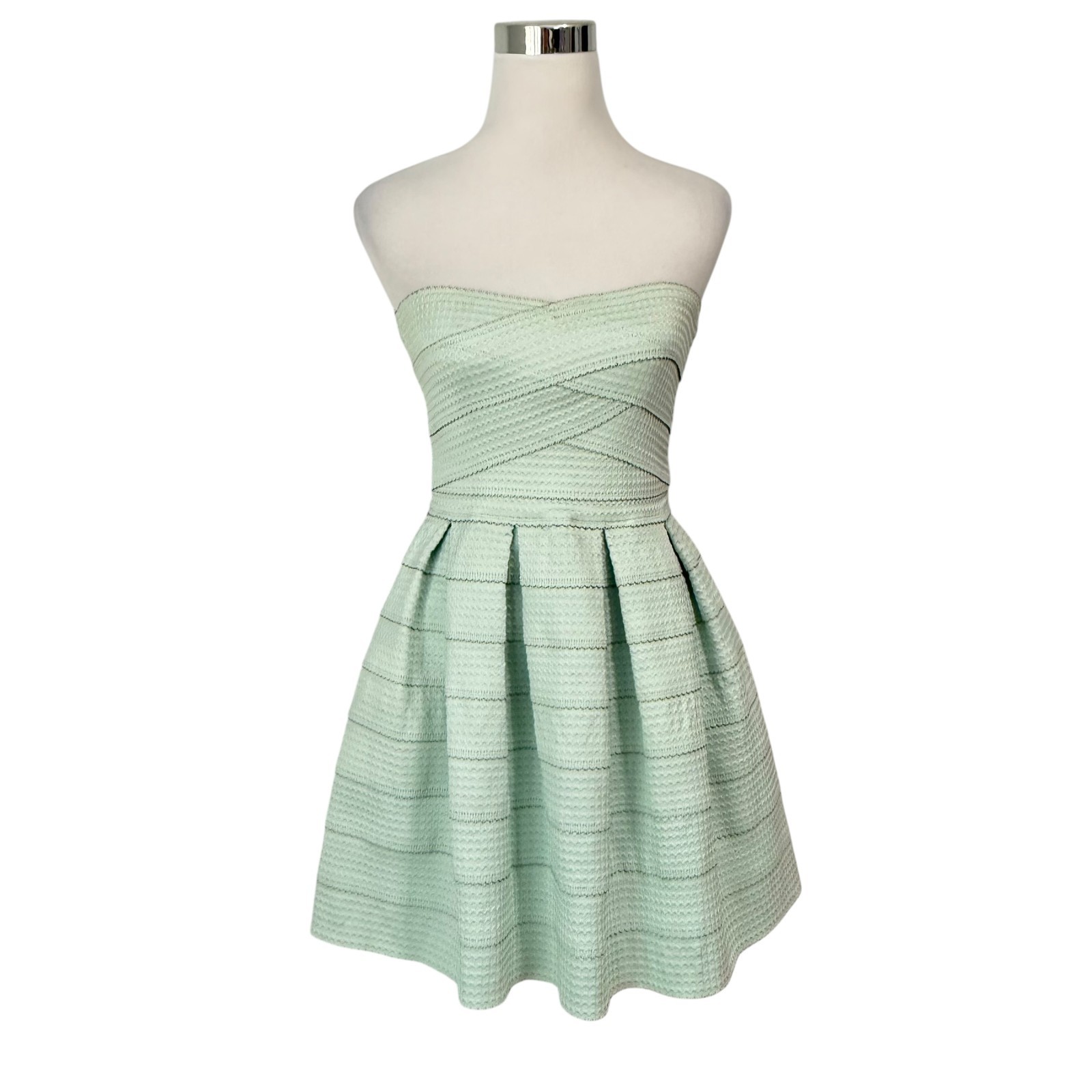 Jun Ivy Dress Womens Medium Mint Green Strapless Textured Fit Flare Pleated Mini