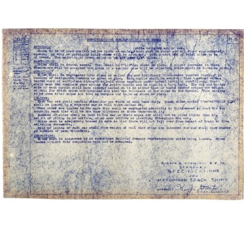 1951 Railroad Bangor Aroostook Hardwood Track Shim Specifics Blueprint H6 DWDD14