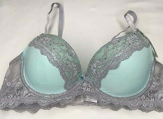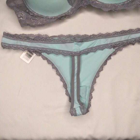 Hers By Herman Bra & Panties Set 38D X-LARGE Panties Green Gray Bejeweled NEW