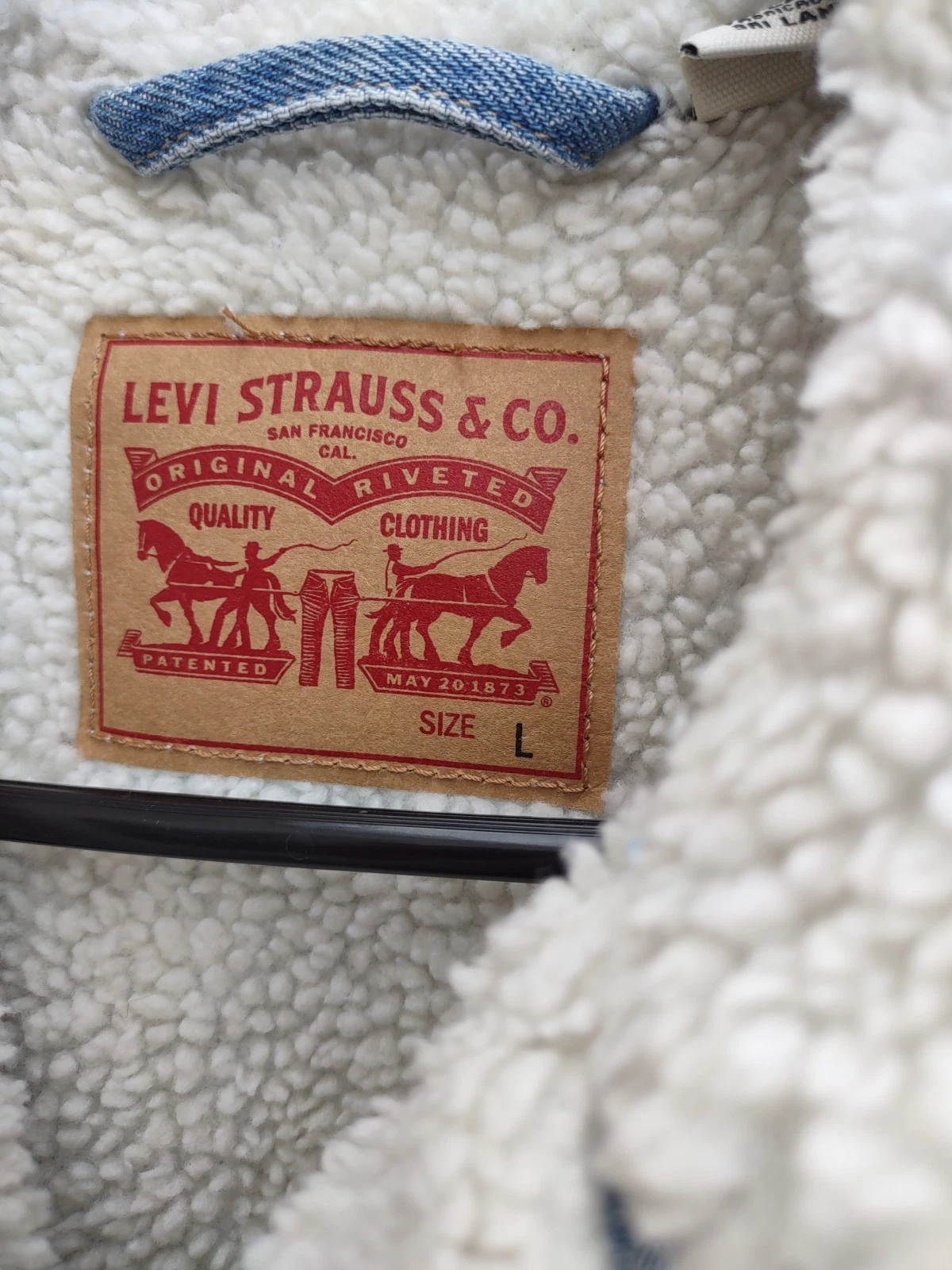 Men's like new vintage Levi's classic lined denim jacket in size Large. The jacket features a snap closure and a blue color, making it a stylish and versatile addition to any wardrobe. With the iconic Levi Strauss brand and timeless style, this jacket is sure to be a great choice for those looking for classic outerwear with a touch of retro charm.