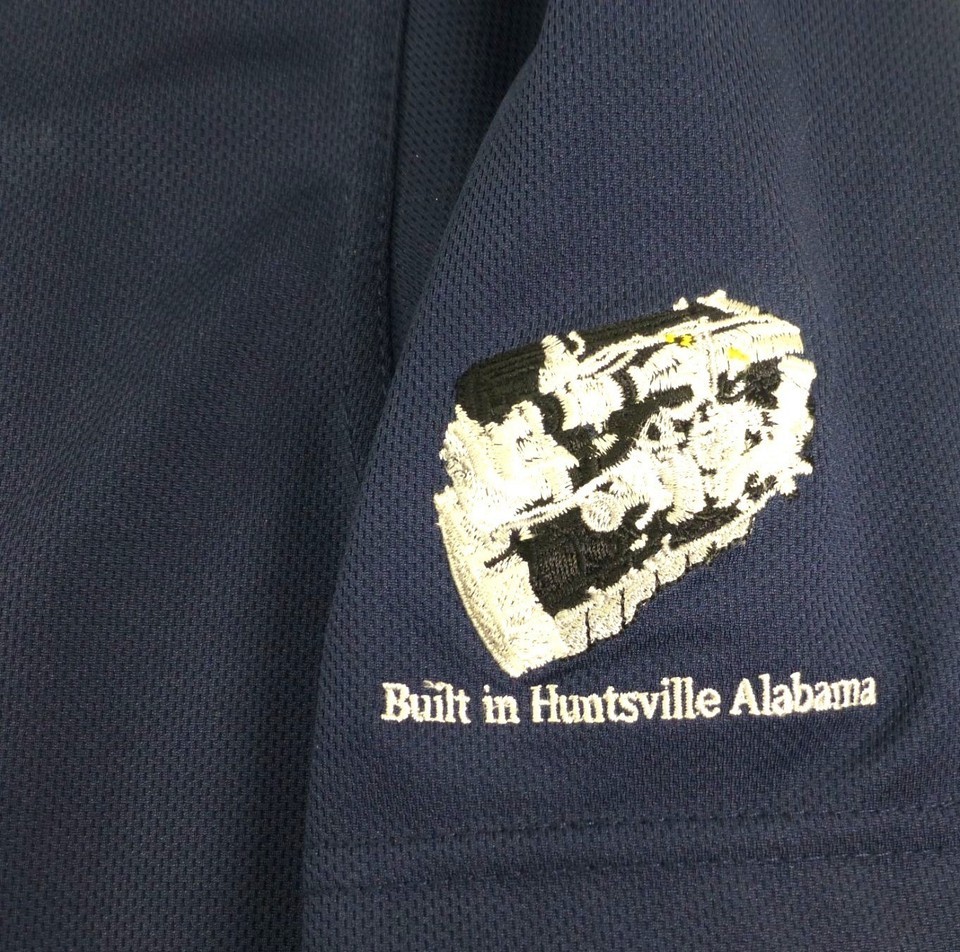 International A26 Featherlite Polo Shirt XL Navy Built In Huntsville Alabama Emb