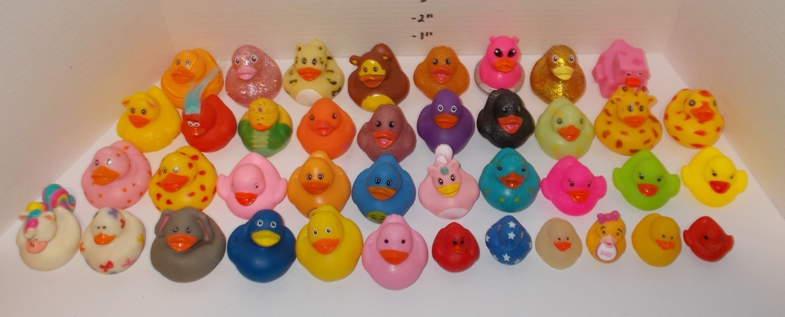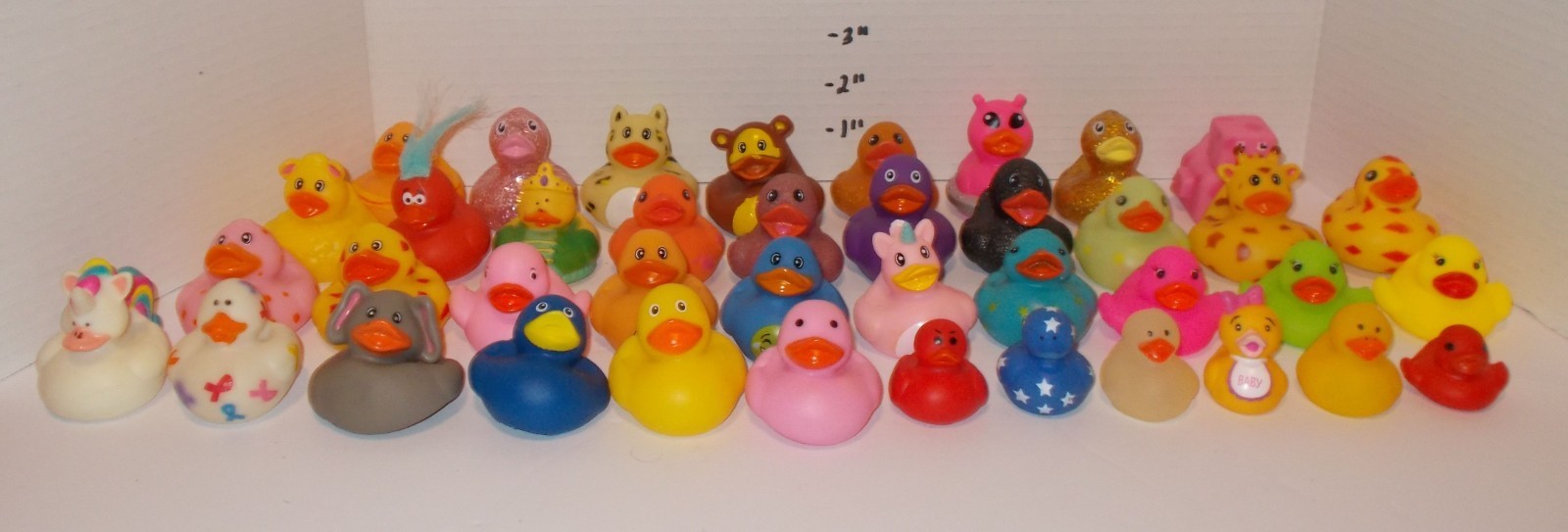 For Sale is a rare and hard to find Huge Lot of 40 Different Pretend Play Rubber Ducks JEEP polka dots glitter. in Good USED condition may have some paint wear as pictured. would make a great addition to any Dinosaur toy collection. Please ask Any and All Questions prior to purchasing. Fast Same or Next day shipping with Free Delivery Confirmation within the U.S. Payment Due within 7 days of purchase (if you need more time please let us know In advance) we love to combine shipping is always a Yes and Most of the time Additional Items Ship for free.