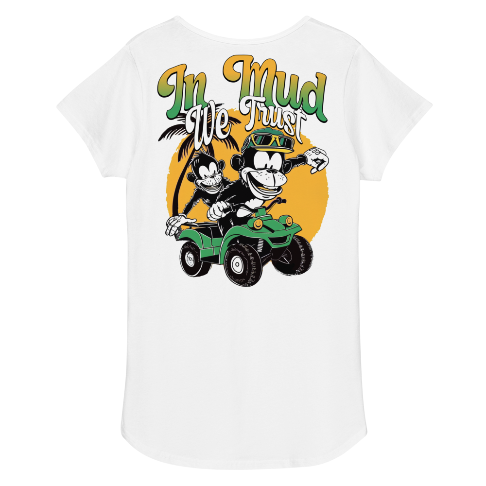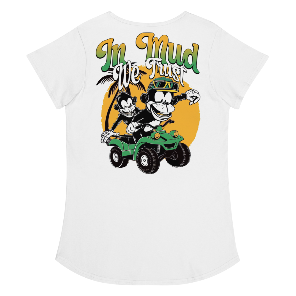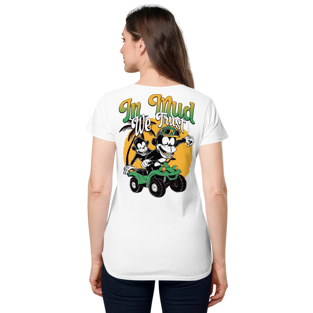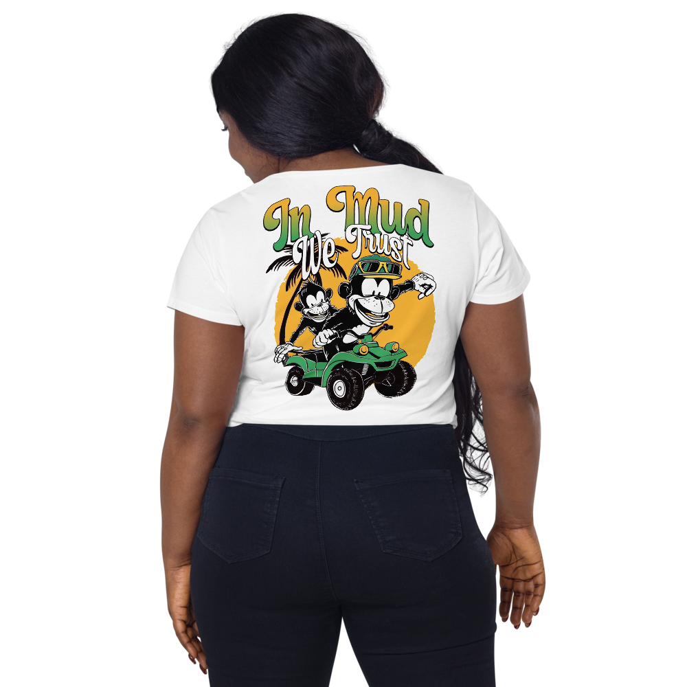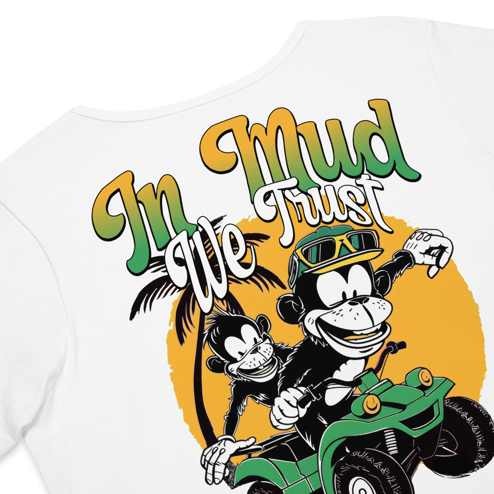 Women’s Round Neck Tee – “In Mud” Back Print White