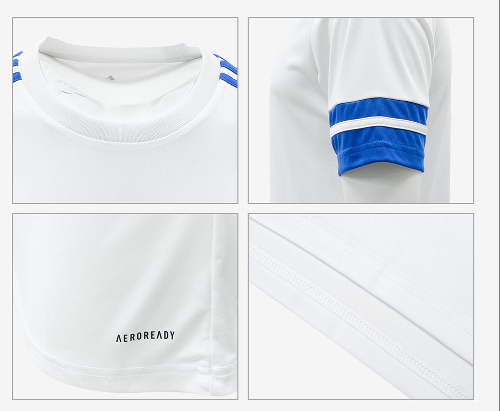 Main Features ---Brand : adidas ---Gender : Men ---Material : Polyester 100% ---MPN : JG5827 ---Color : White / Royal Blue ---Size : S, M, L, XL, 2XL, 3XL, 4XL / Aisan Fit ---What is the Asian Fit? Asian Fit refers to clothing tailored for body shapes commonly found in Asian populations. These items typically run 1-2 sizes smaller than U.S. sizes, with narrower shoulders, chest, and overall proportions. Please check the size chart carefully or consider sizing up for the best fit.
