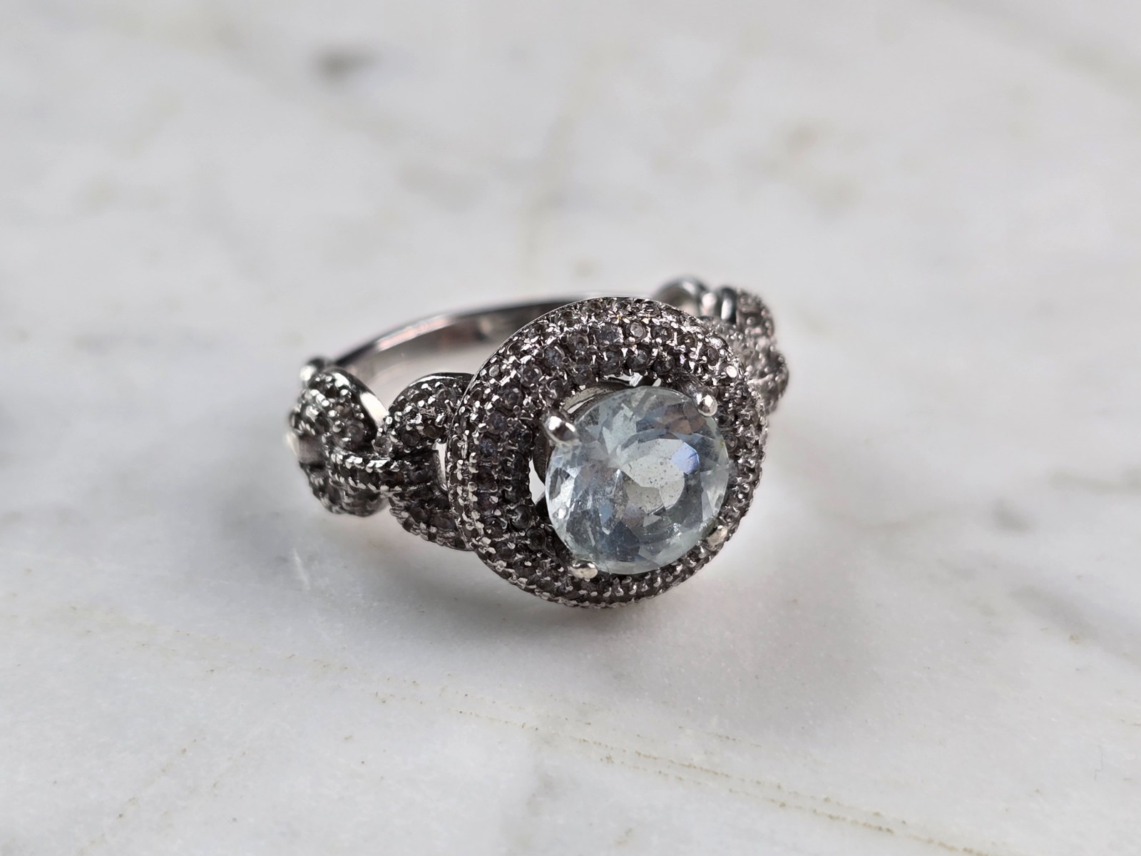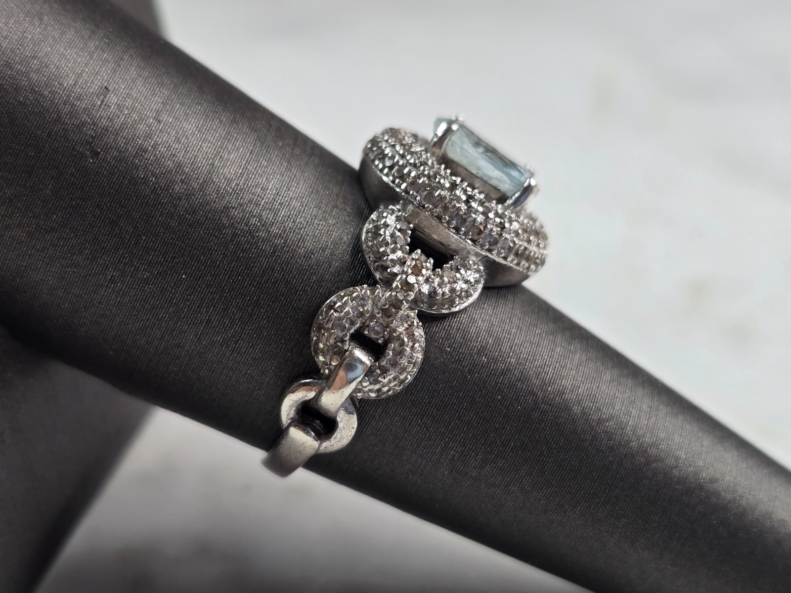 Womens Vintage Estate Sterling Silver Topaz CZ Ring 5.1g #E7501