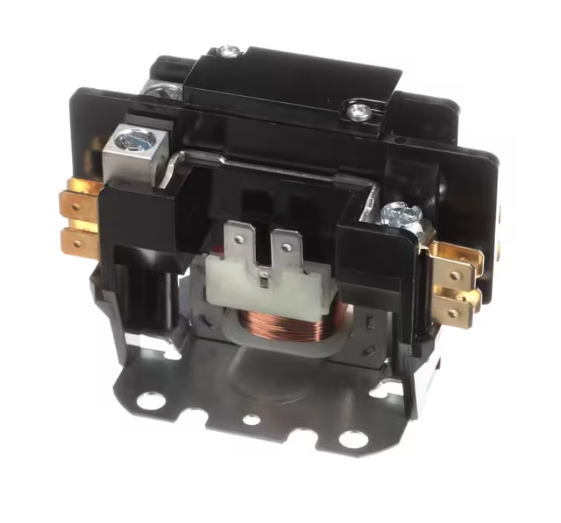 The Lennox HCC-1XQ01AG106C Contactor is a genuine OEM 1-pole contactor designed to handle high-current switching in residential and light commercial HVAC systems. Operating with a 24V AC coil and rated at 25 Full Load Amps (FLA), this contactor is essential for controlling compressors, fans, or other high-draw components. It ensures safe, consistent power delivery and is compatible with many popular Lennox units.