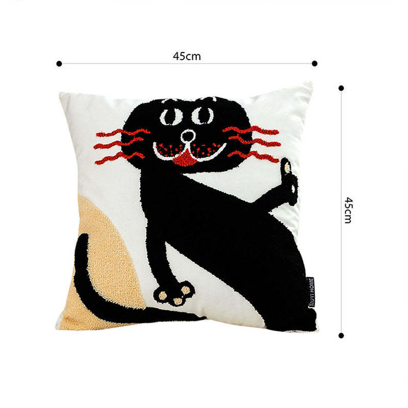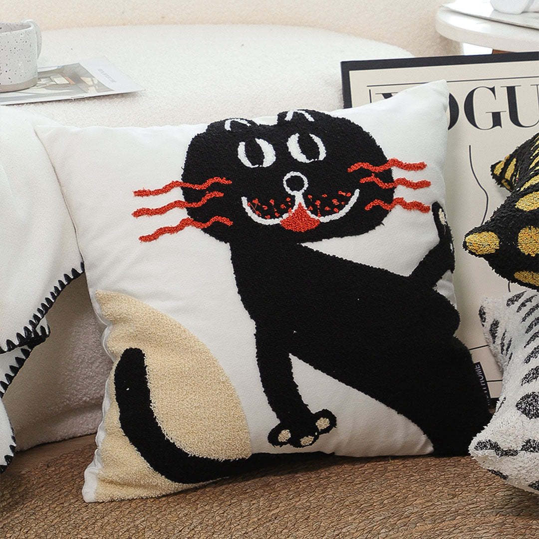 Add whimsical charm to your space with this black cat pillowcase (insert not included). Featuring a cute cat silhouette with bright red whiskers on crisp white fabric, it's perfect for adding playful style to your sofa, bed, or reading nook.