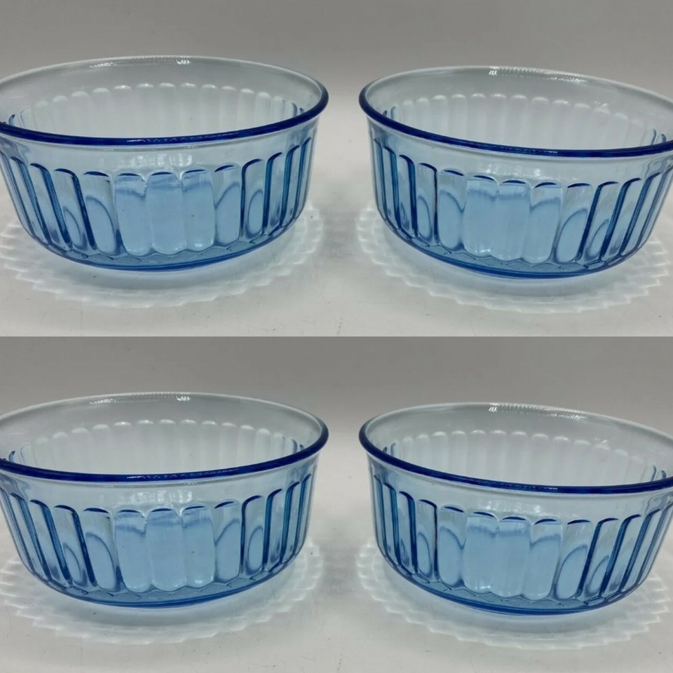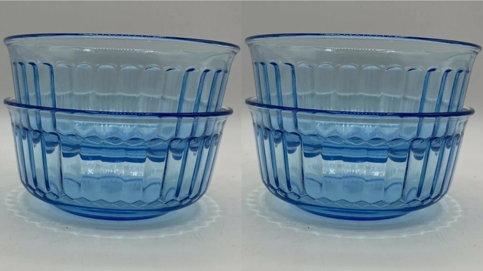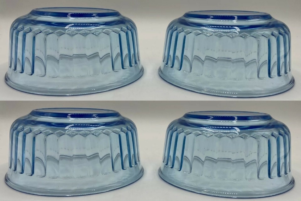 Mexico Clear Blue Ribbed Bowls 500ml Set of 4Pc. / FREE SHIPPING