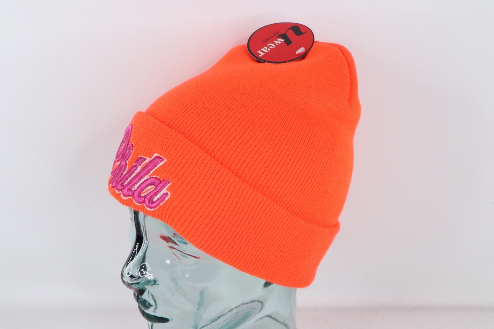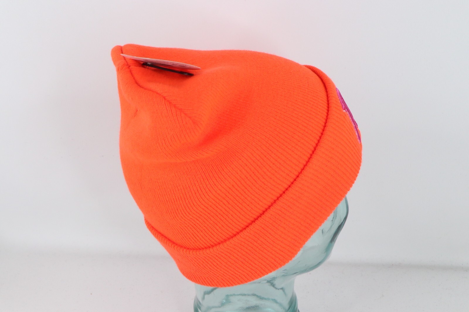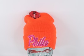 NOS Vtg Streetwear Philadelphia Spell Out Script Winter Beanie Hat Neon Orange