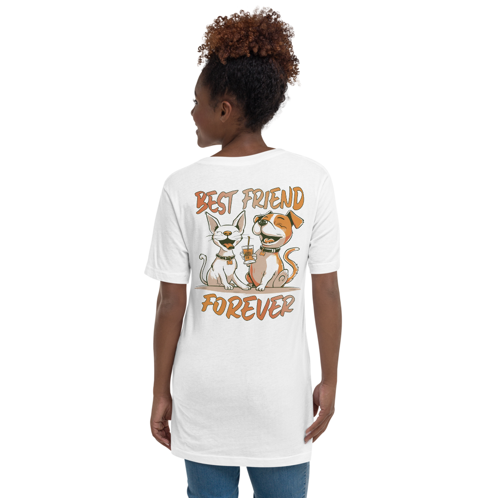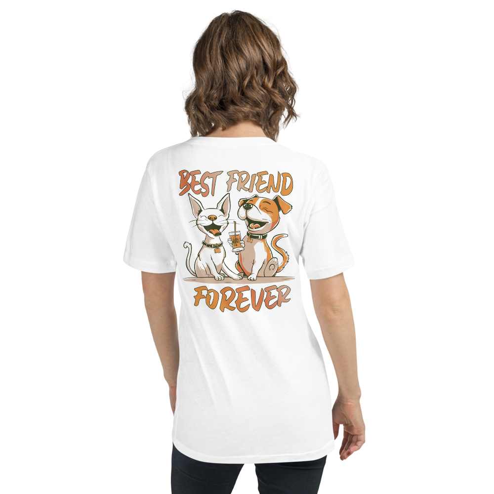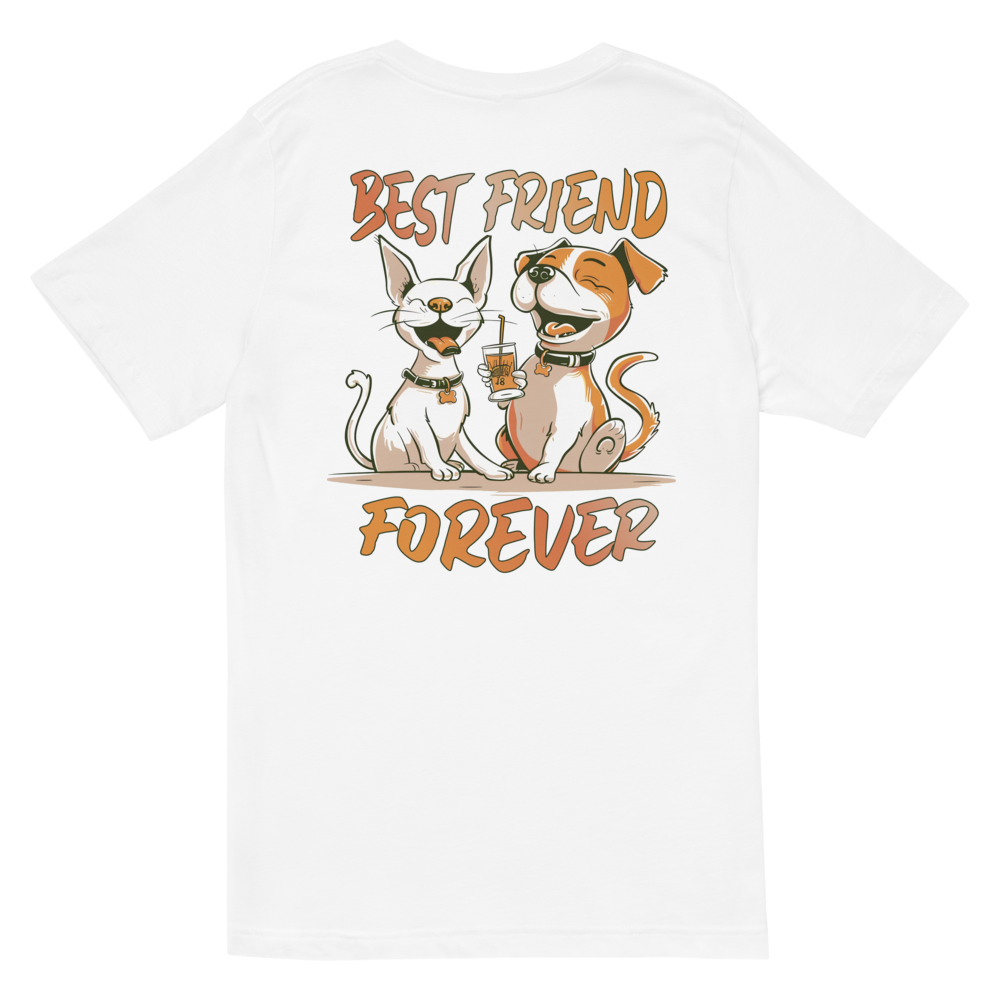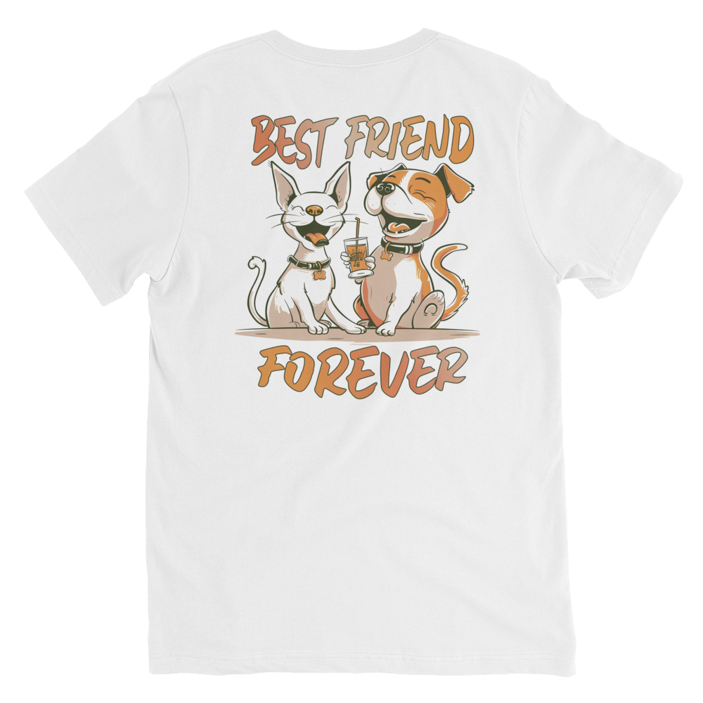 Unisex Short Sleeve V-Neck T-Shirt – Best Friend Back Print White