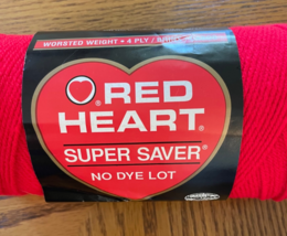 Red Heart Super Saver Aran weight 100% Acrylic yarn 8oz skein color 390 Hot Red