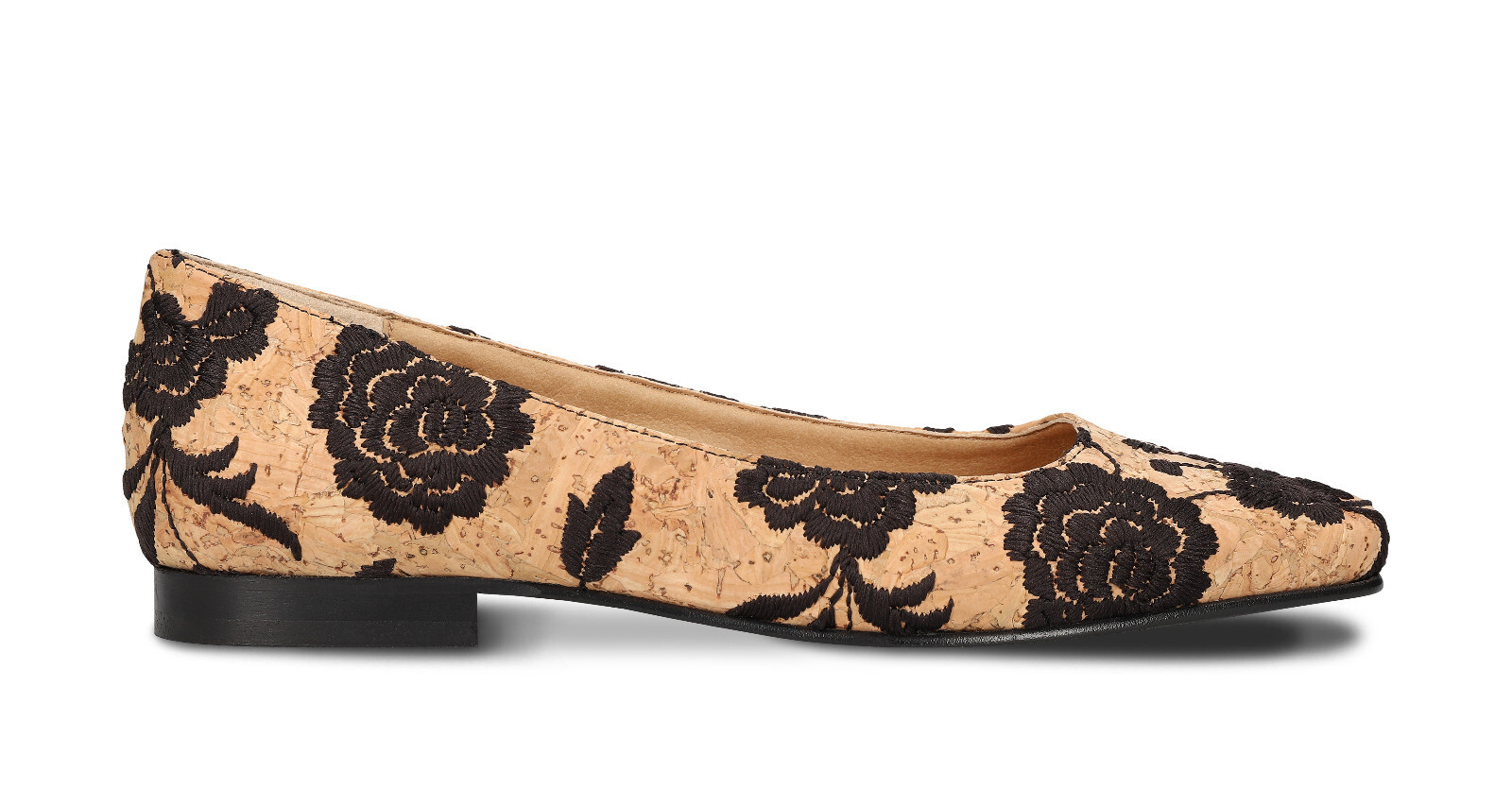 Ballerines véganes en liège brodé floral à bout carré avec doublure respirant