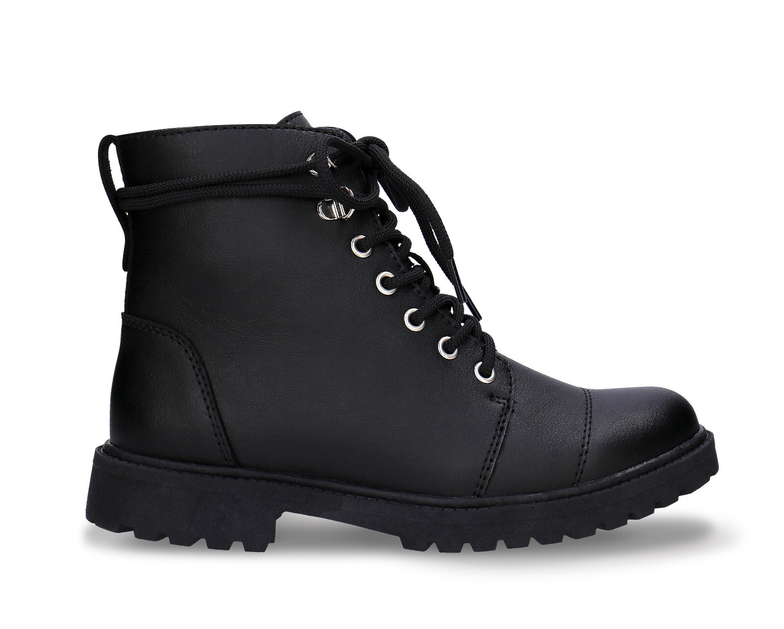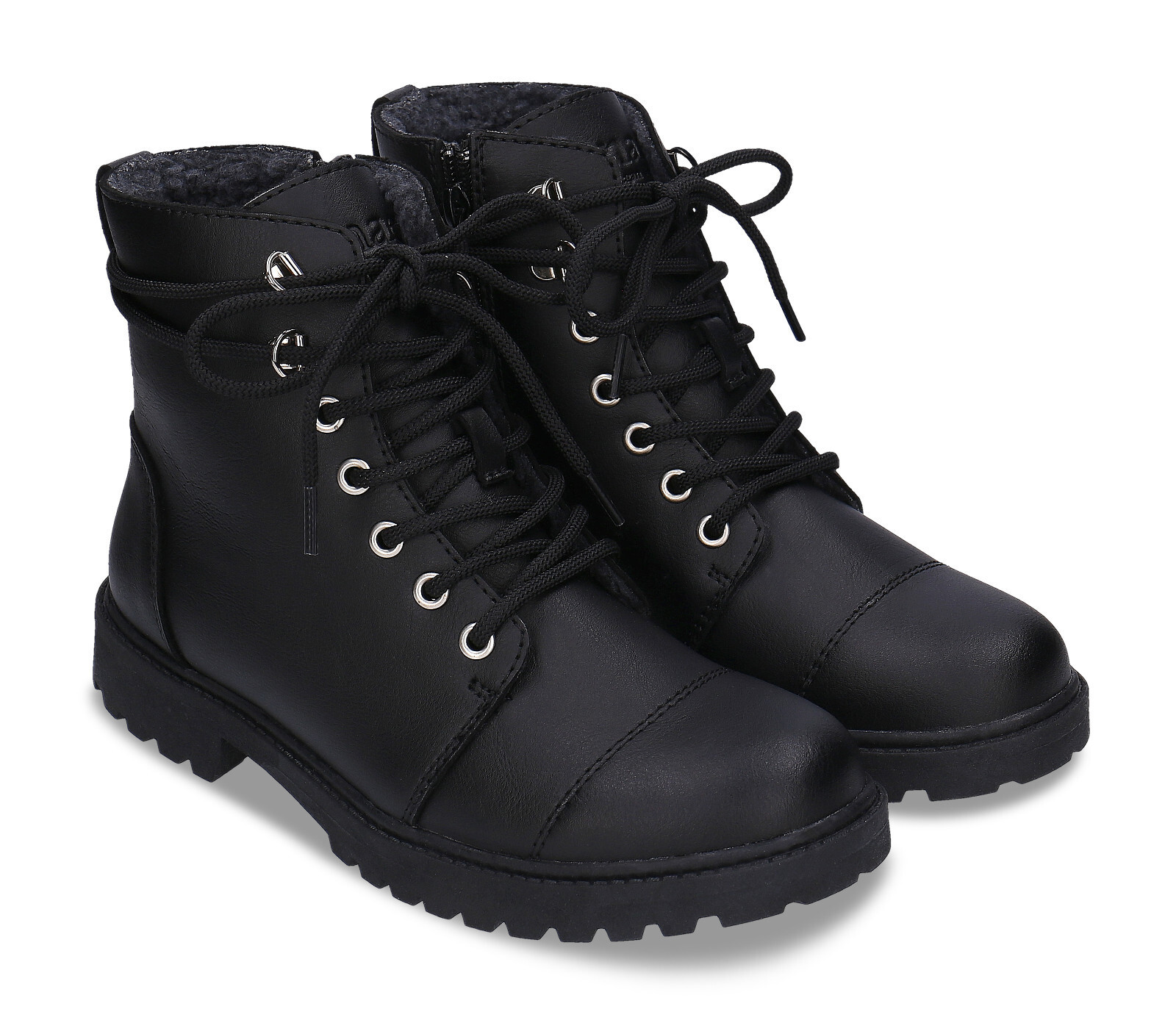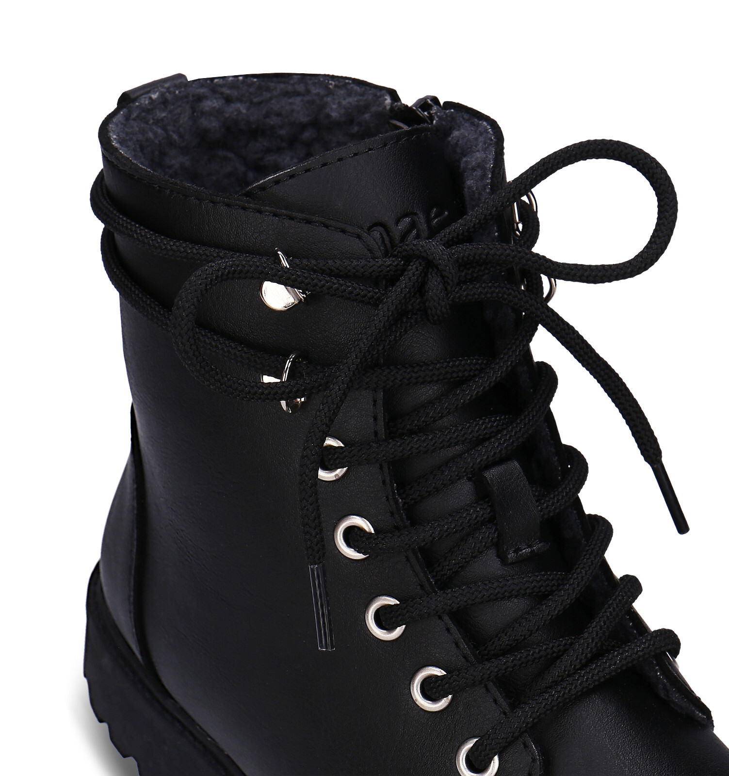 Bottines combat hiver cuir végane noir et doublure chaude en coton éclair lacets