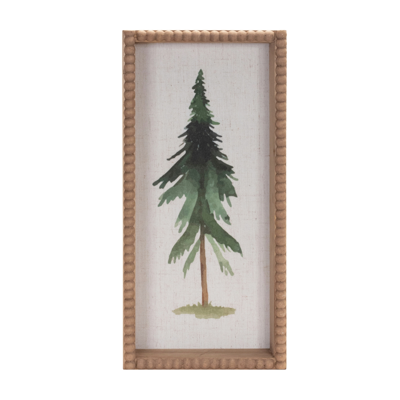 Woodland Charm for the Holidays Features classic pine tree artwork in festive green and beige tones, adding a touch of rustic elegance to your holiday decor. Crafted for Lasting Beauty Made from high-quality MDF wood with a sturdy fir wood frame, ensuring durability for seasons to come. Easy to Hang Display Each plaque includes an attached hook for effortless installation, making it simple to elevate your winter wall decor. Suitable for indoor use only