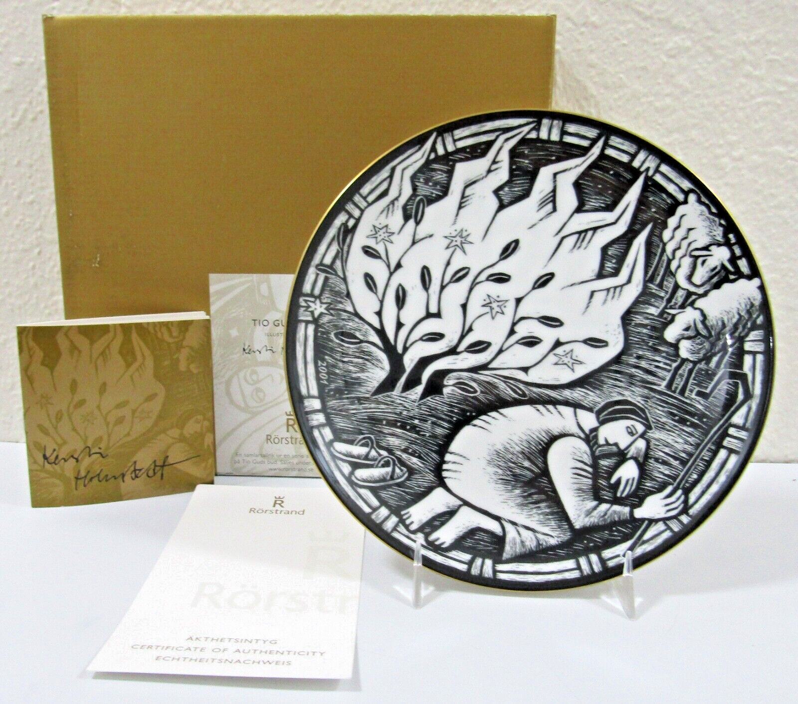 2001 Rørstrand Ten Commandments Moses before the Burning Bush COA, Brochure Box