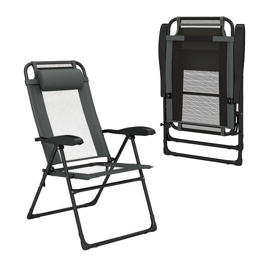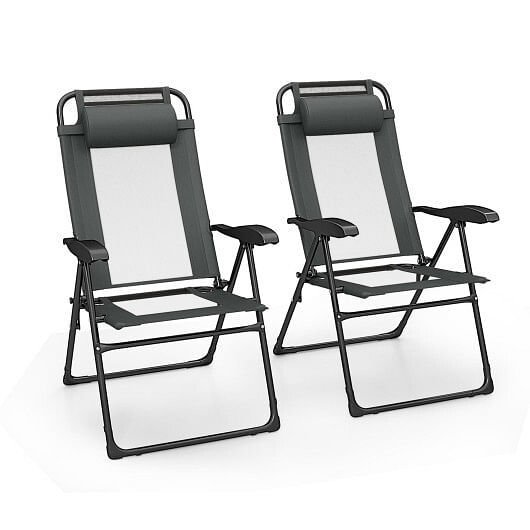 Outdoor Folding Chairs Set of 2 with Armrests and 7-Level Backrest-Gray - Color: