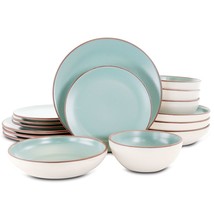 The Gibson Elite Contempo Classic 16 Piece Round Terracotta Dinnerware Set in Mint will add the perfect modern touch to any home kitchen. Crafted from stoneware and finished with a reactive glaze, this dish collection is designed to last and maintain its quality. Every piece is also dishwasher and microwave safe for easy cleaning and everyday use!