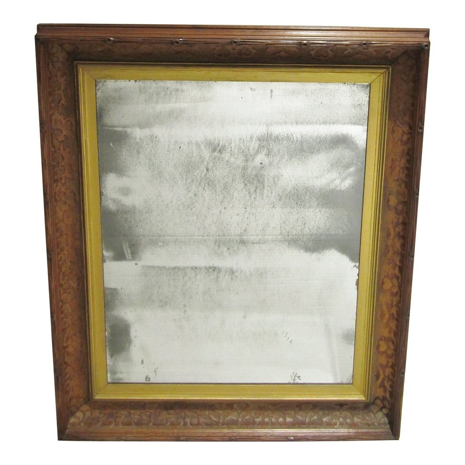 Antique Hand Carved Walnut Faux Bois Casetta Style Wall Mirror Circa 1870's