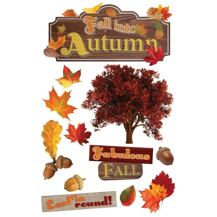 Fall into Autumn 3D Dimensional Scrapbooking Sticker Sheet with Glossy Accents