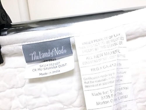 The off-white color is neutral and unisex, and the quilt is designed to fit a standard crib.