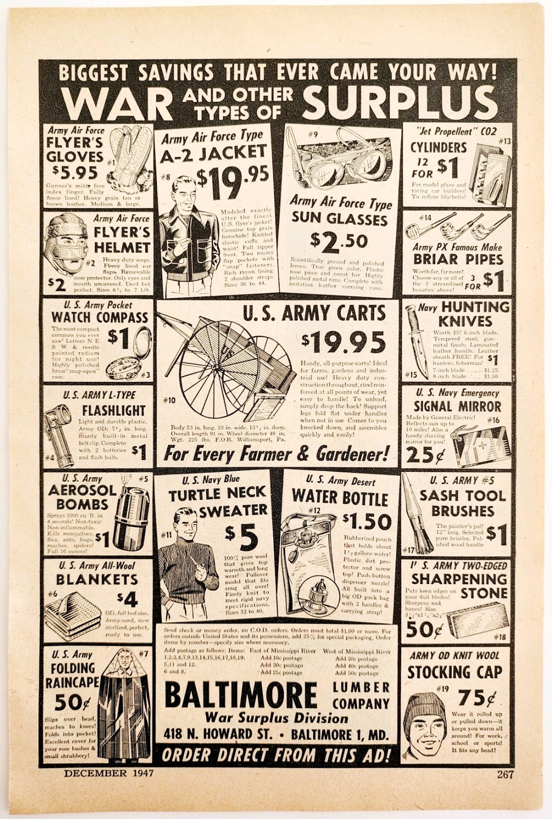 1947 Baltimore Lumber Co Military WW2 Surplus Advertisement Department Store E8F