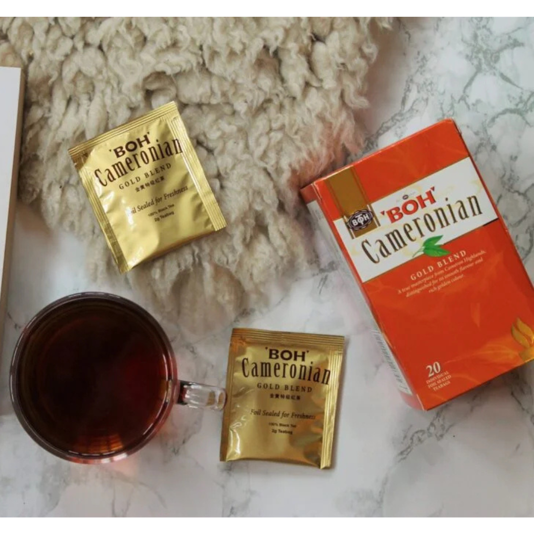 Experience a truly elegant tea moment with BOH Cameronian Gold Blend Tea?a refined black tea from Malaysia?s renowned Cameron Highlands. Each teabag is individually foil-sealed to preserve freshness and layered in authentic plantation heritage. Smooth Rich Flavor ? Crafted from tender shoots of Manipuri and Rajghur jats, this blend delivers a smooth, mellow taste with zero bitterness. High-Quality Leaves ? Only top-grade young shoots are picked to ensure brightness, aroma, and flavour. Premium Packaging ? Individually foil-wrapped to lock in freshness and aroma?perfect for both daily enjoyment and gifting. Heritage Authenticity ? Produced by BOH, the largest black tea manufacturer in Malaysia, founded in 1929 and headquartered near Cameron Highlands plantation. 100% premium black tea f
