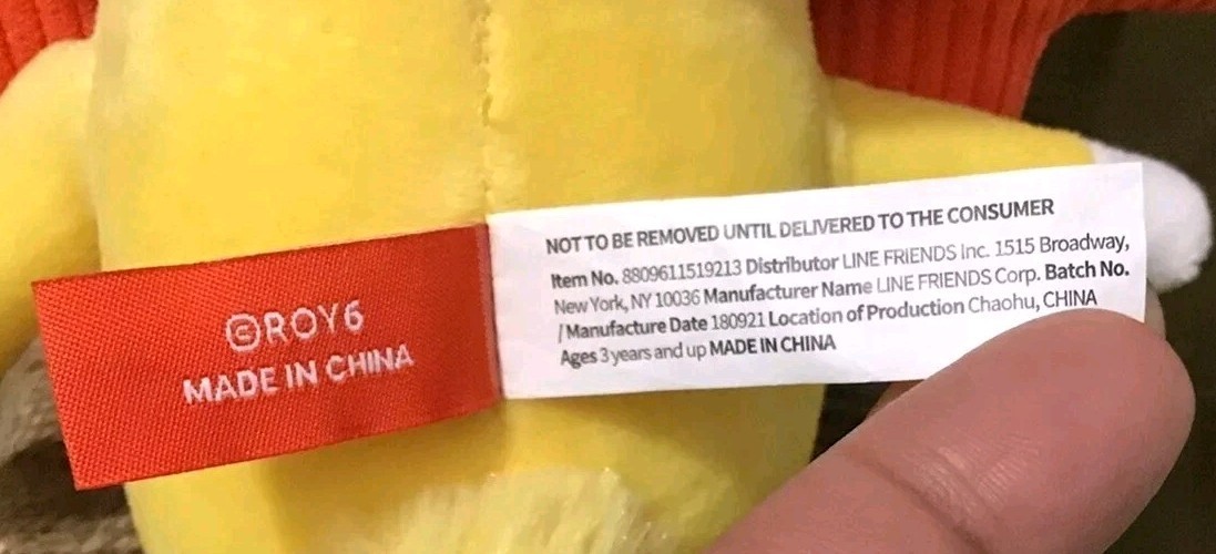 With its brand name, Line Friends, and character family, ROY6 Merchandise, this standing doll plush is a fantastic find for collectors and fans alike.