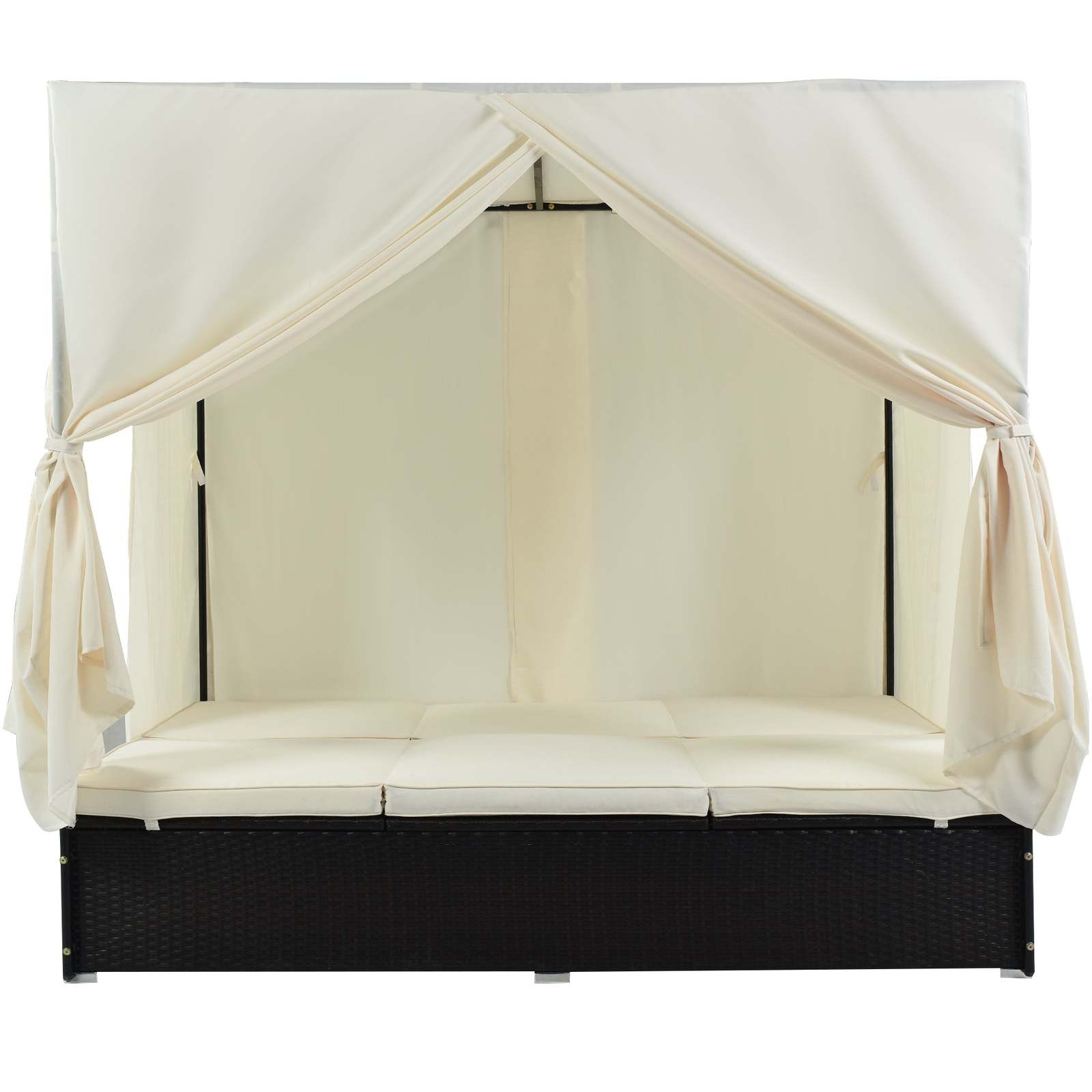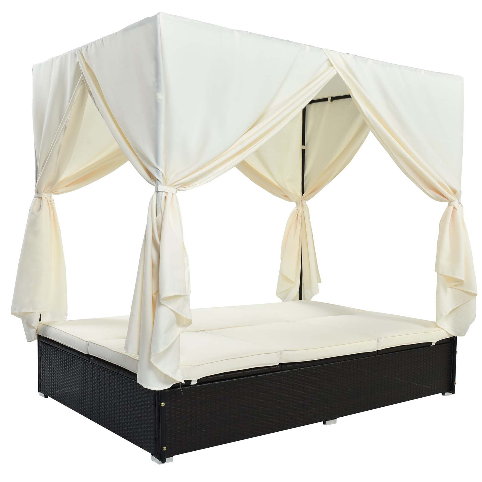 Perfect and Elegant Suit Design This stylish rattan rectangle sunbed has side and overhead curtains to provide both shade and privacy. It is suitable for 2-6 people to lie or sit. Create a new vision for your balcony, garden, backyard or poolside .