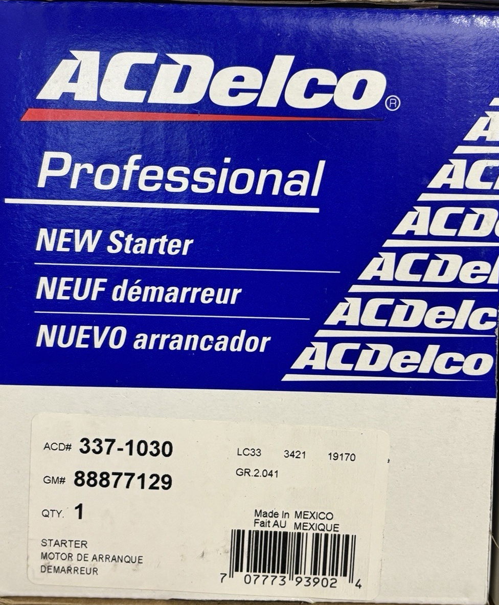 ACDelco 337-1030 Starter Motor GM 88877129 Buick Chevrolet GMC Oldsmobile Saturn