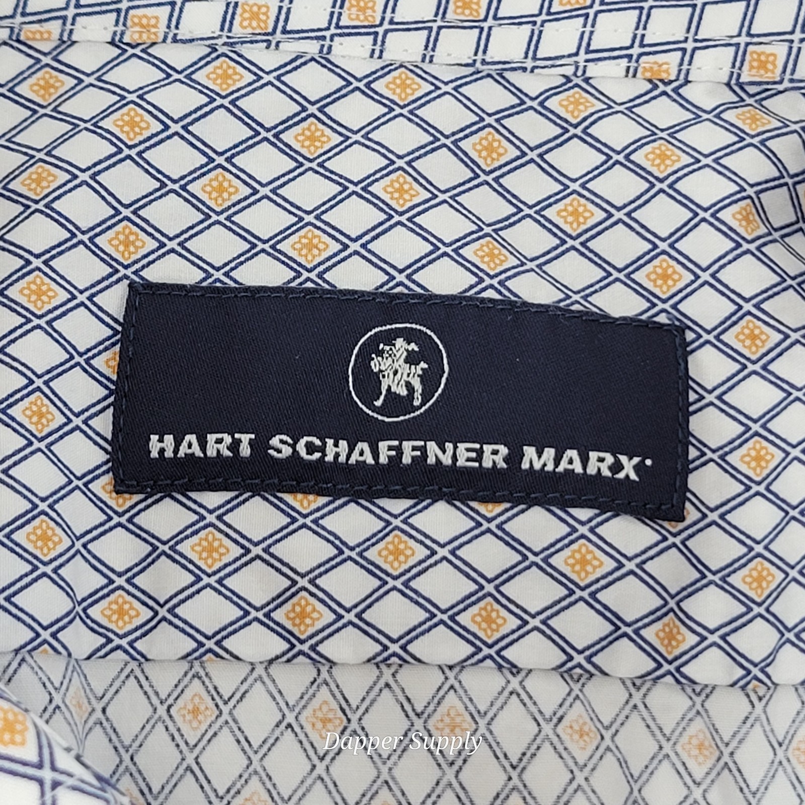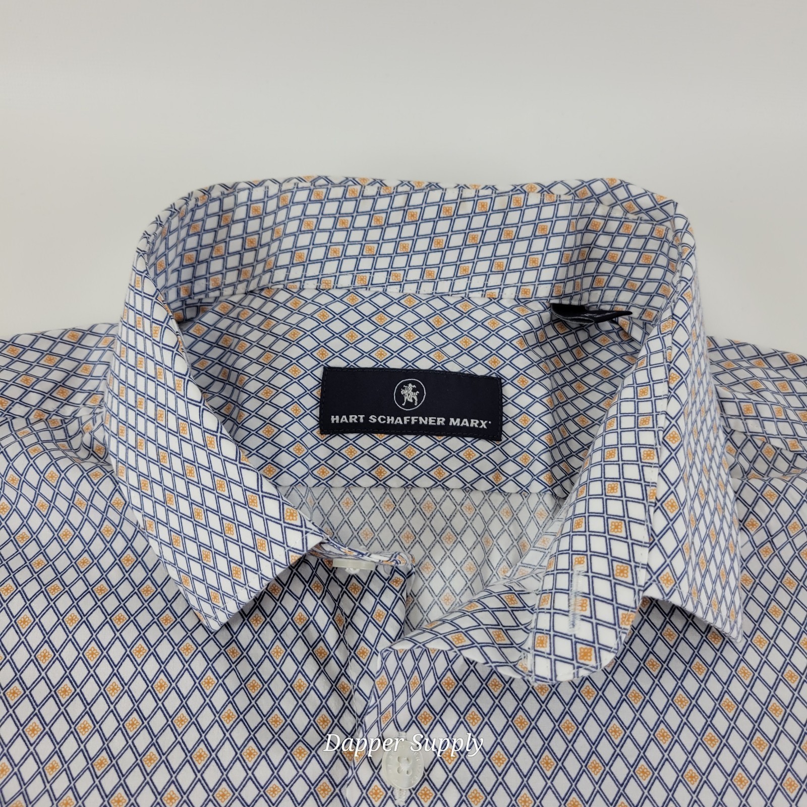 Hart Schaffner Marx Mens Shirt XL Long Sleeve Geometric Print Cotton Blend