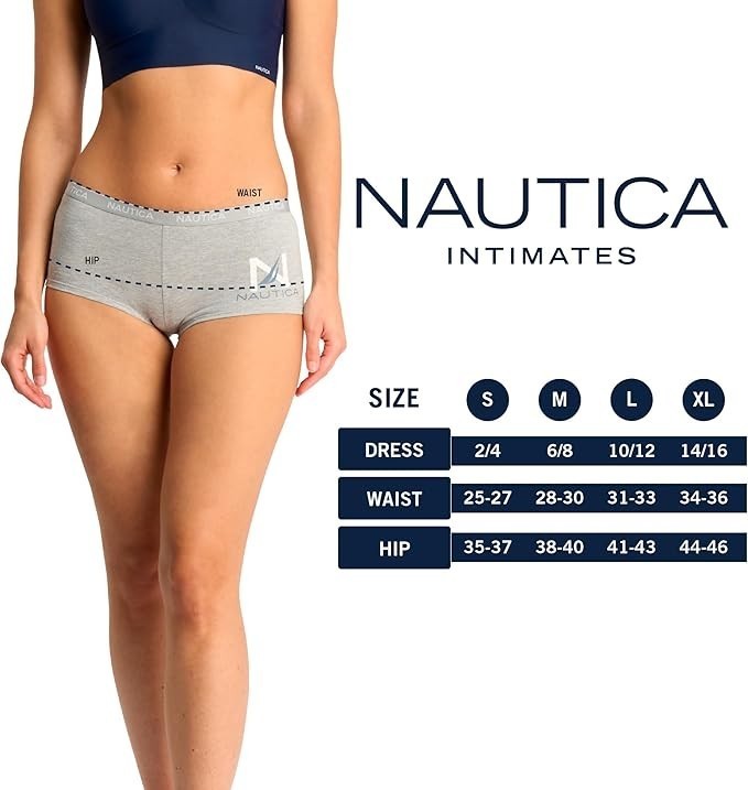 Nautica Women's Cotton Boyshort Underwear NT4463 5PKA COTTON BOYSHORT PANTIES M