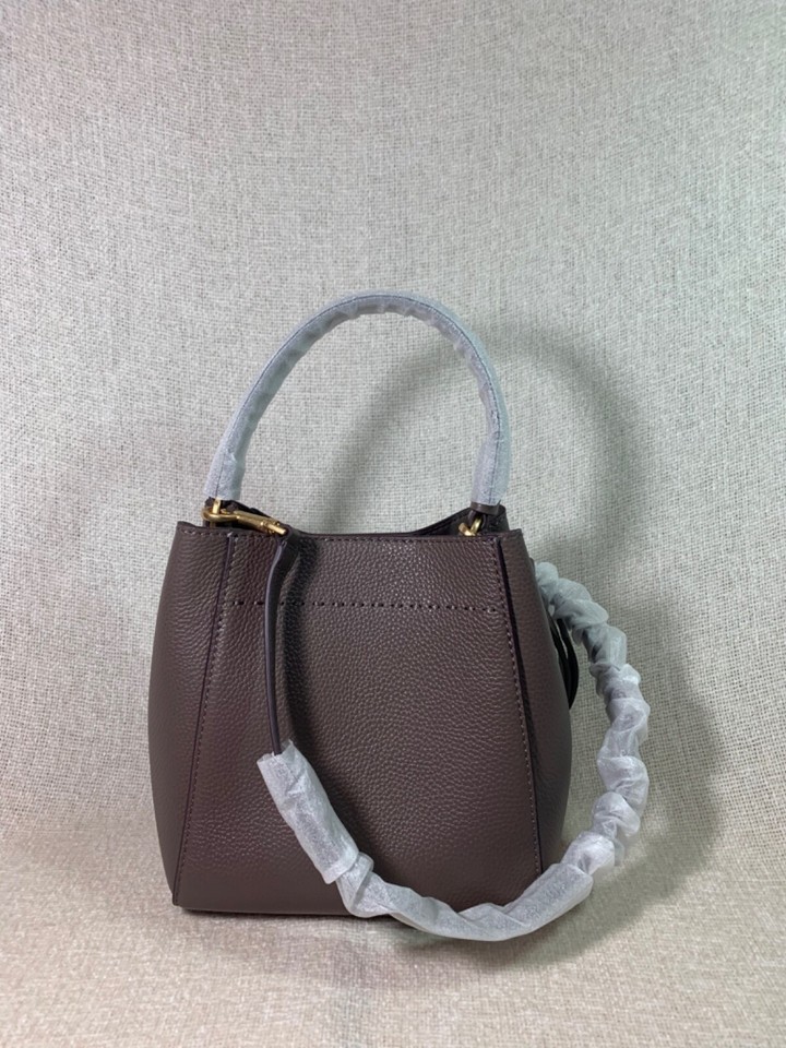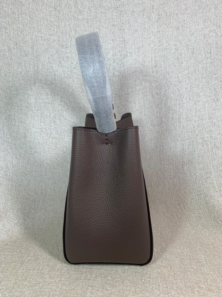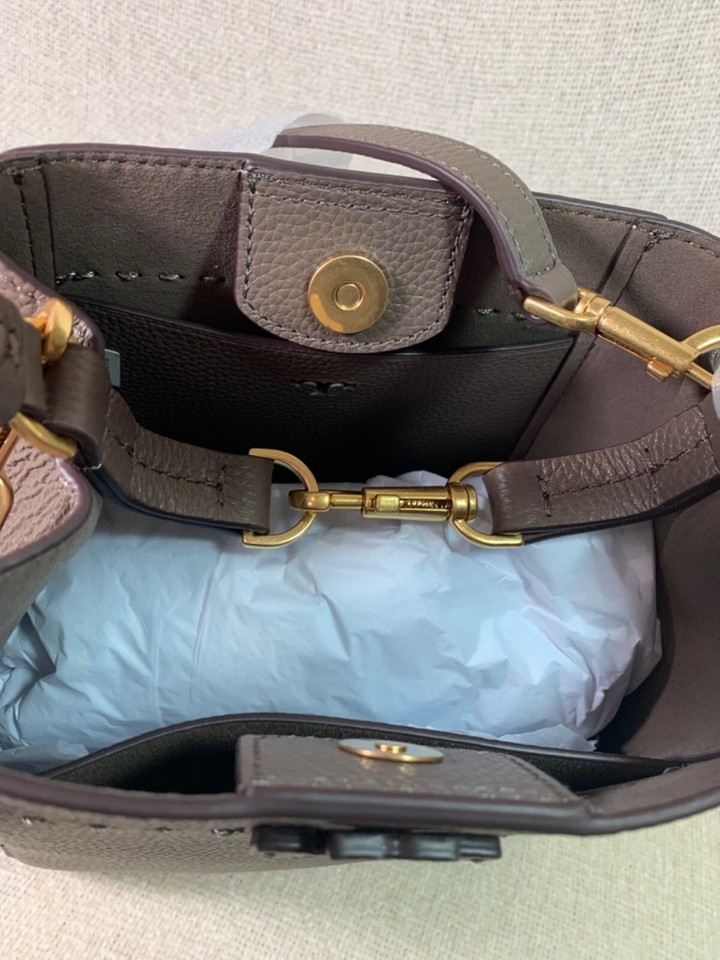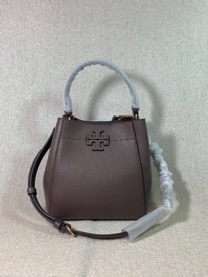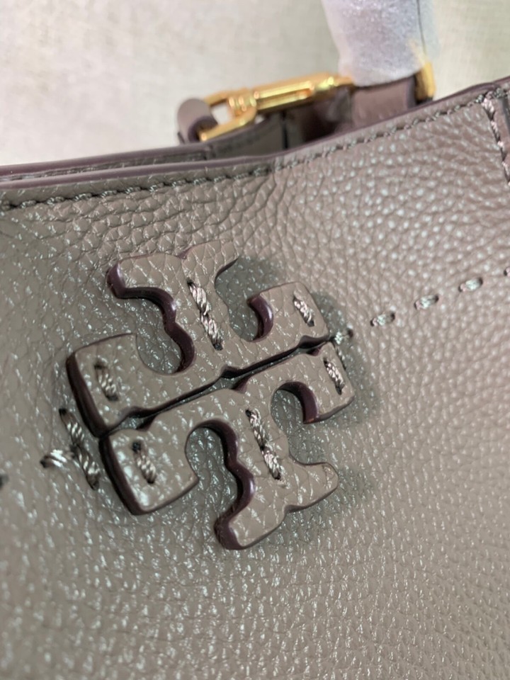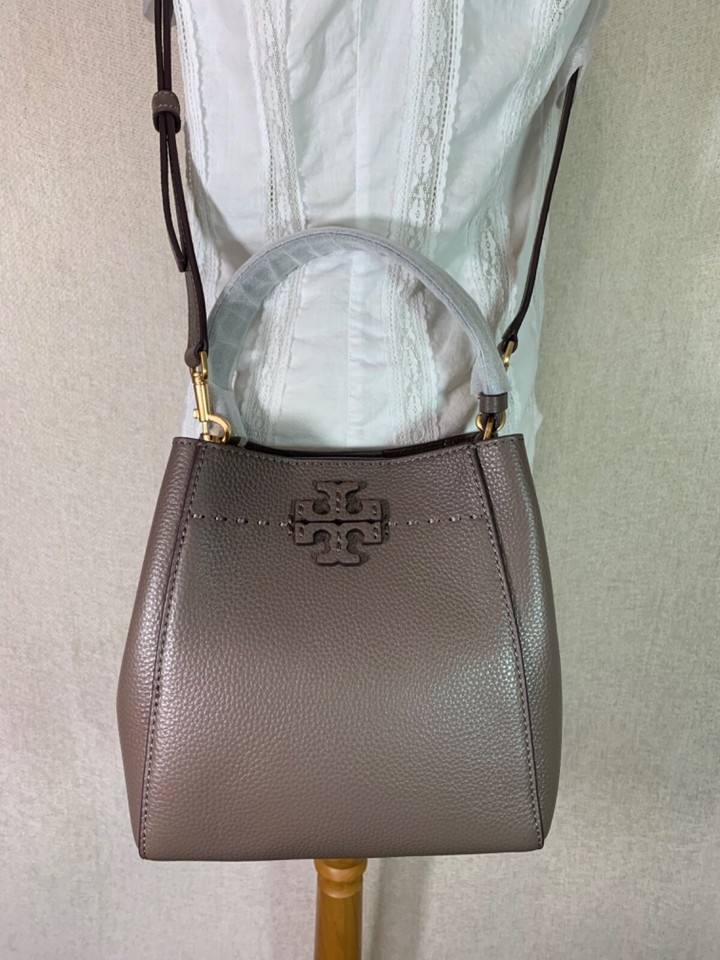 NEW Tory Burch McGraw Silver Maple Taupe Leather Small Crossbody/Tote/Bucket Bag