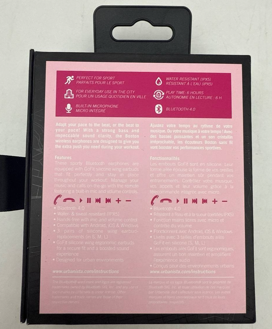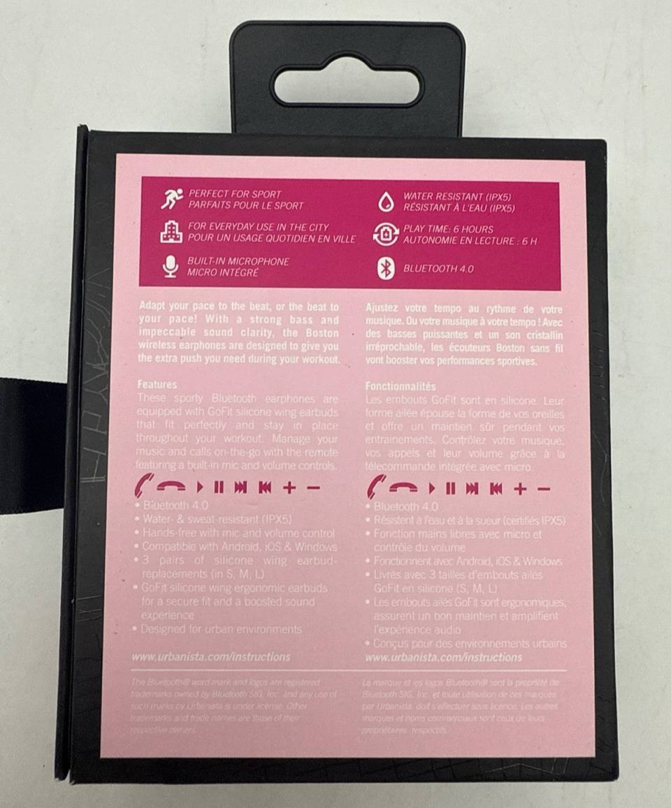Urbanista Boston Wireless Sport Earbuds Neckband In Ear Headphones IPX5 Pink