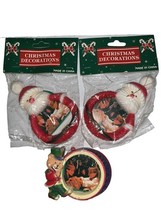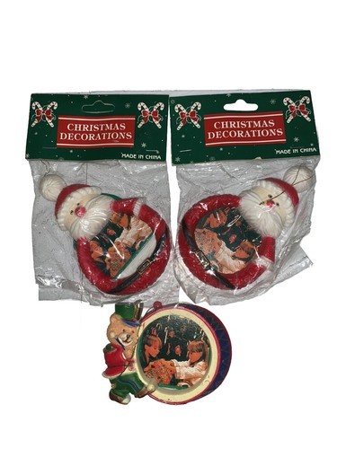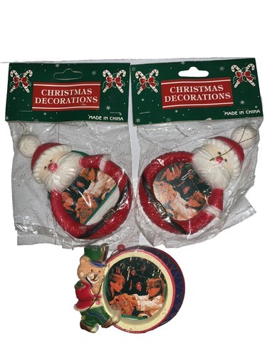 Vintage Lot Of 3 Santa Claus & Bear Nutcracker Picture Ornaments