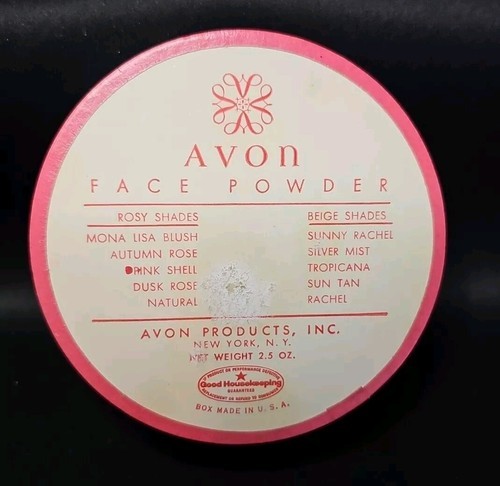 UP FOR SALE: Vintage 1950s 1960s NOS FULL Powder Box AVON Color - Pink Shell -Decorative Collectible
