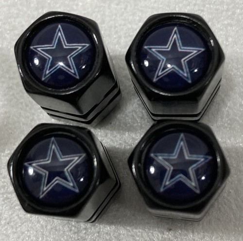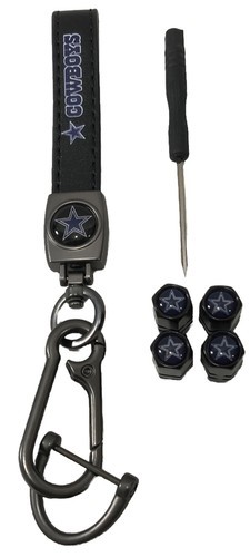 New genuine leather lanyard with 4 black metal tire stem valve covers set with dallas cowboys logo for the fan who has a collection or is starting one and wants to look stylish while driving around.