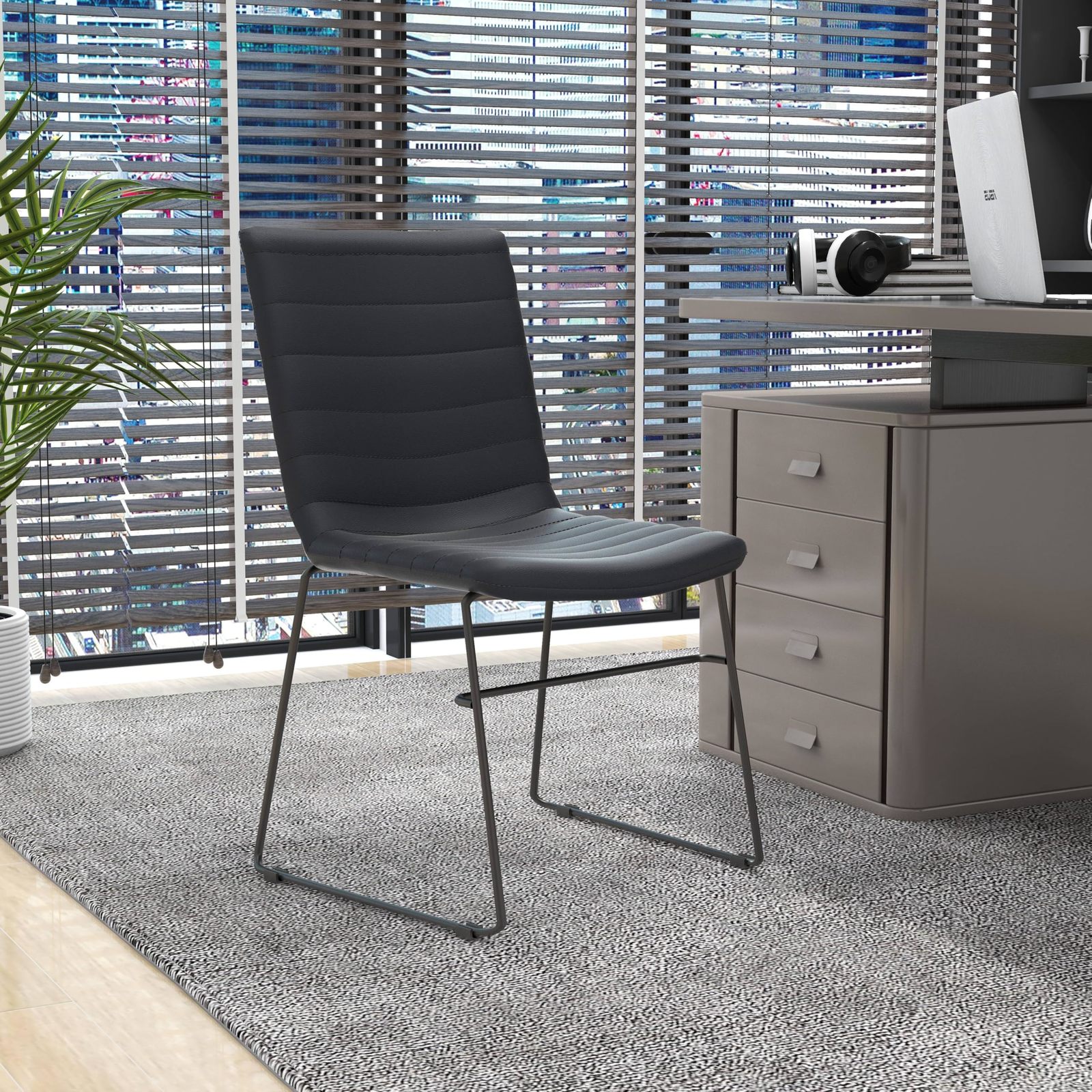 Bullet point: [ERGONOMIC DESIGN WITH HORIZONTAL STITCHING] The guest chair provides excellent lumbar support with its well-padded seat and backrest that help reduce strain and promote good posture. It also includes horizontal channel stitching on the backrest, adding a touch of elegance and modernity.