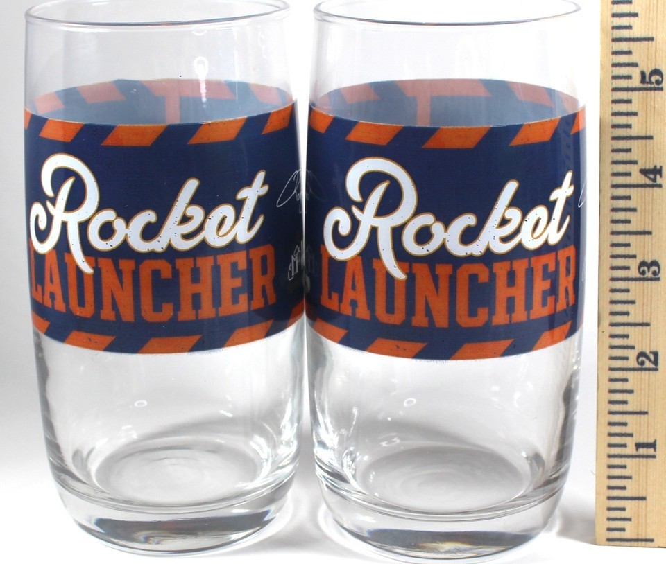 Rocket CY7 Roger Clemens Foundation + Megaton Brewery 2 -16 oz glasses Astros Colors Distressed Look Limited Edition RARE! NO other listings found for this item anywhere!