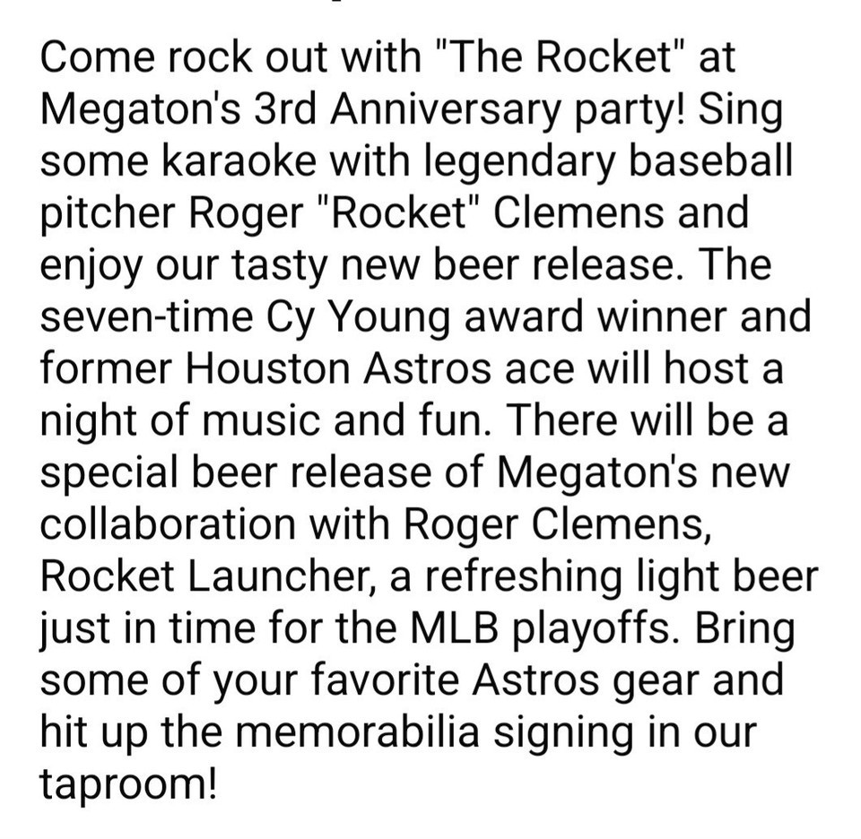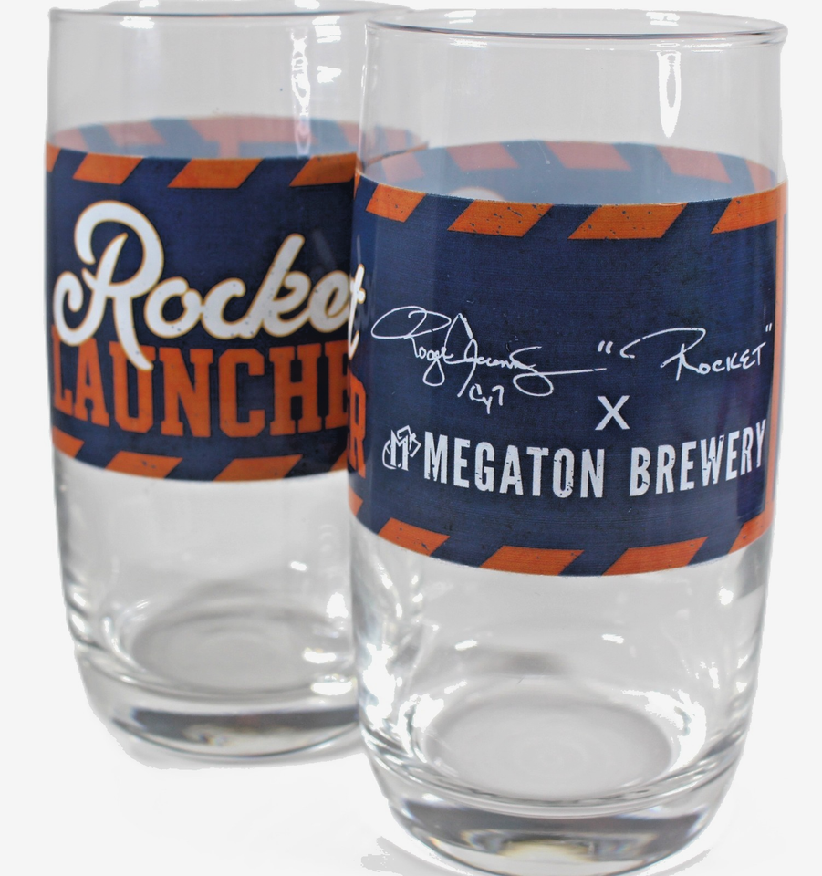 Rocket CY7 Roger Clemens Foundation + Megaton Brewery TWO 16 oz glasses Astros