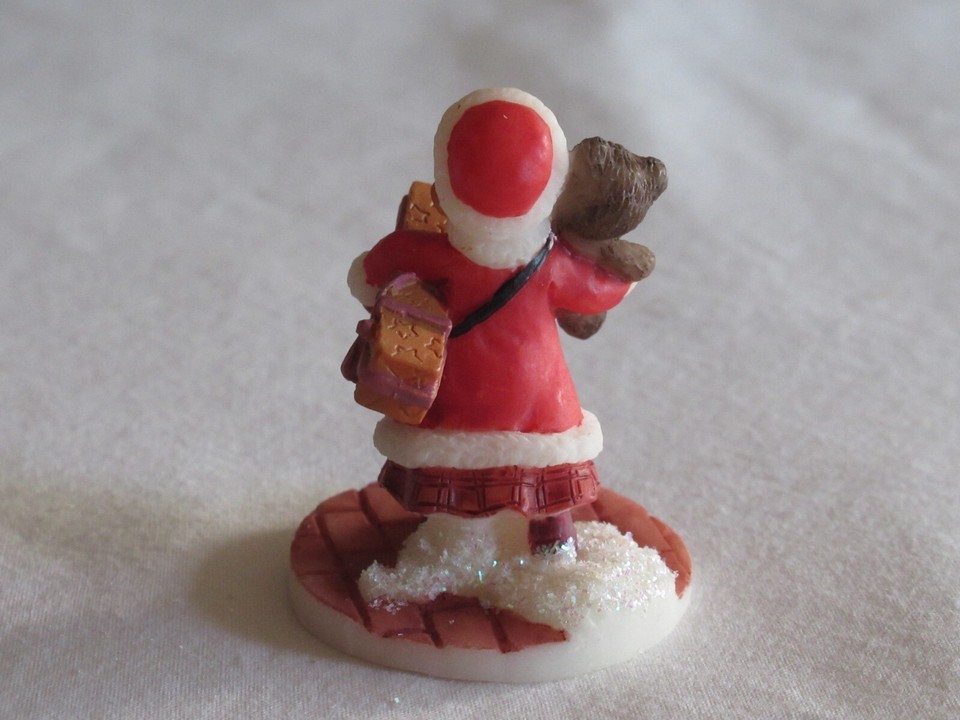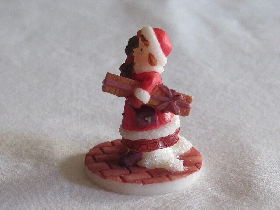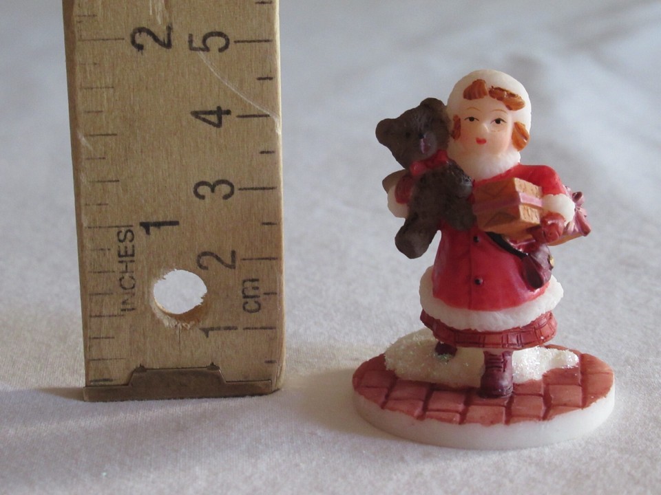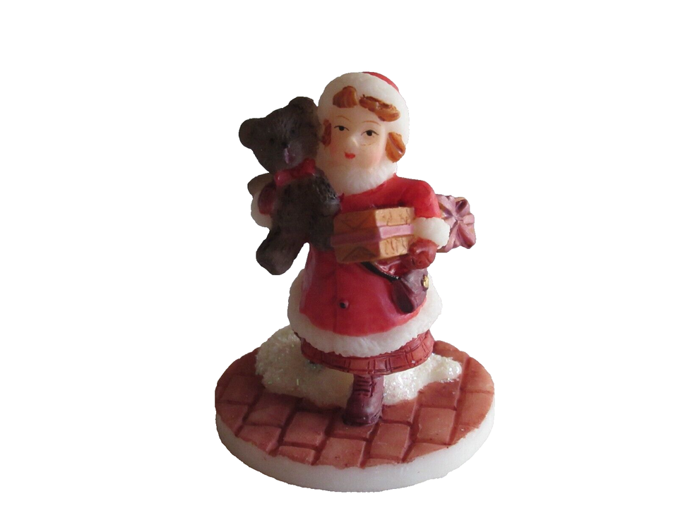 O'Well Christmas Village Figurine Resin Child Girl w/ Teddy Bear Present 1.75"