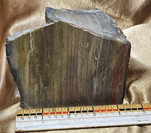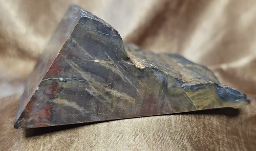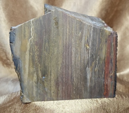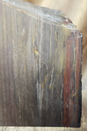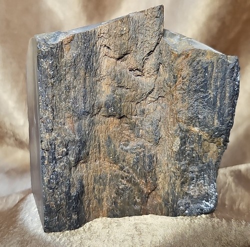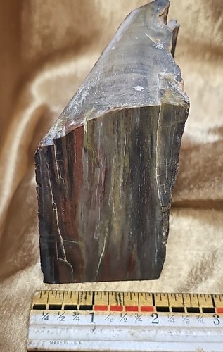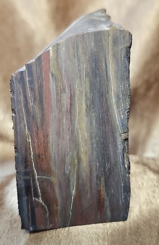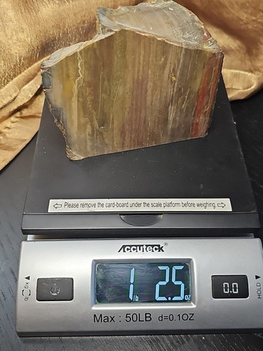 UP FOR SALE: Natural Live Edge Petrified Wood Stone Fossil Colorful 1.25 lb Display Lapidary Unpolished cut on three sides