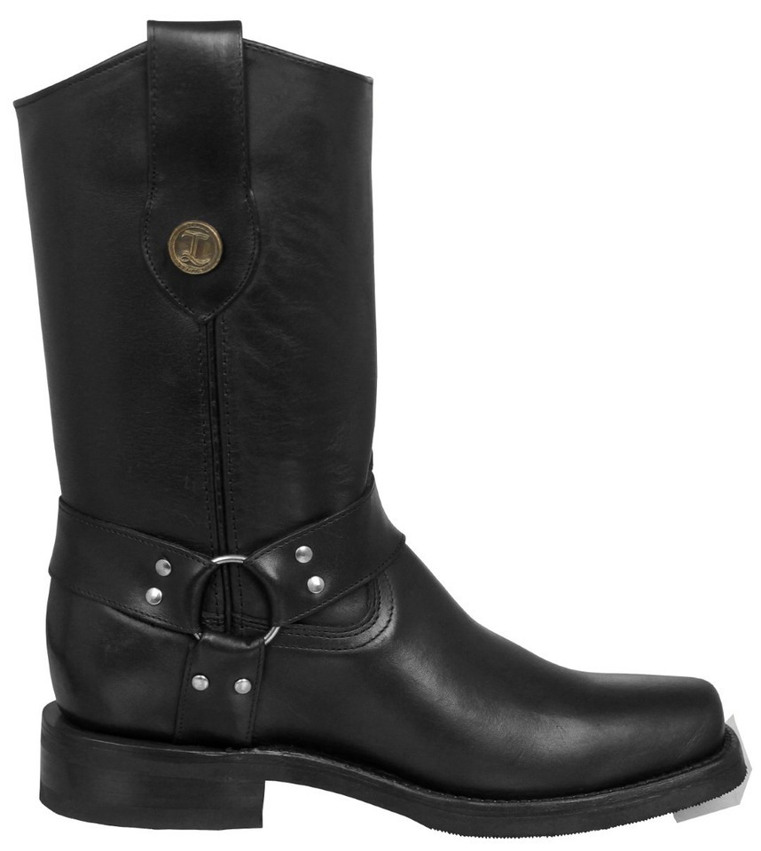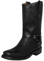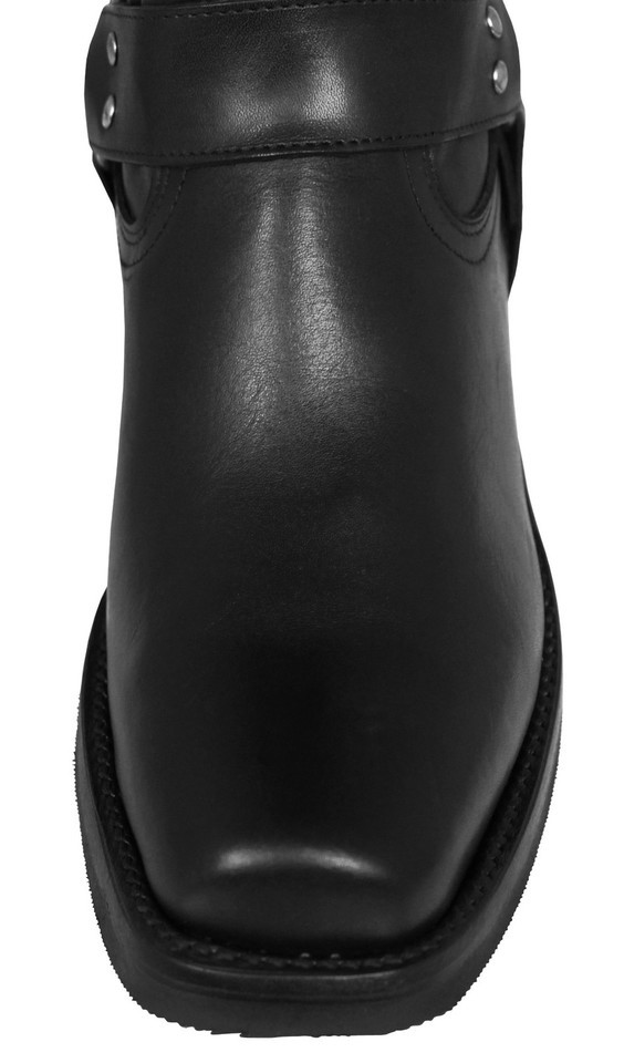 Mens Black Rodeo Wear Boots Cowboy Leather Motorcycle Harness Pull On Square Toe