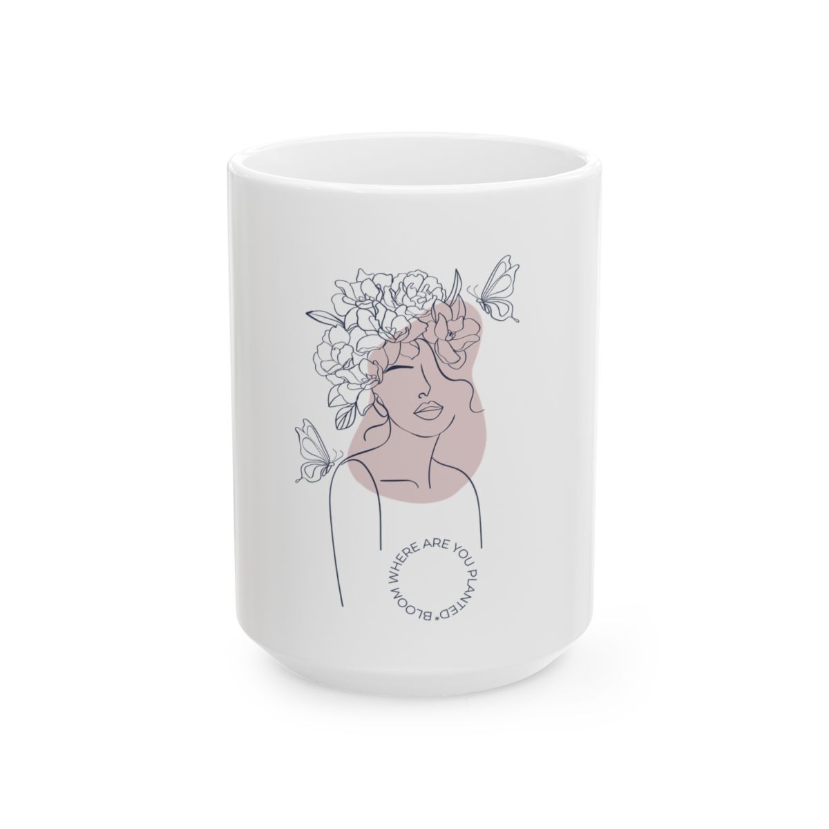 Floral Butterfly Woman Art Love Ceramic Mug Boho Gift Coffee Mug Tea Lovers