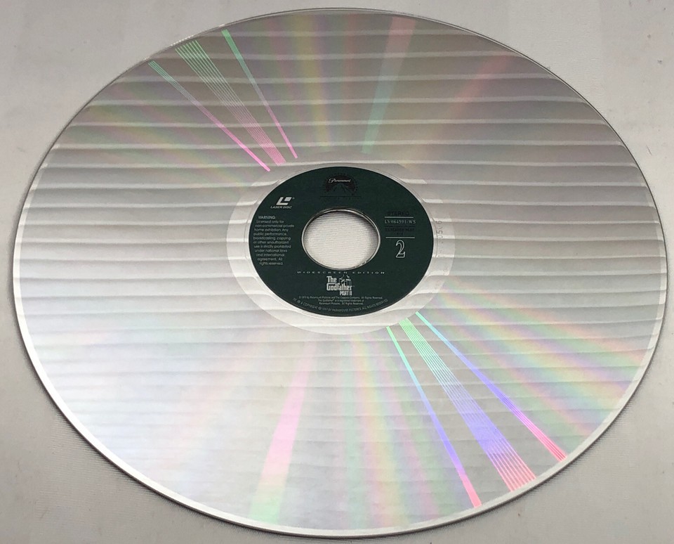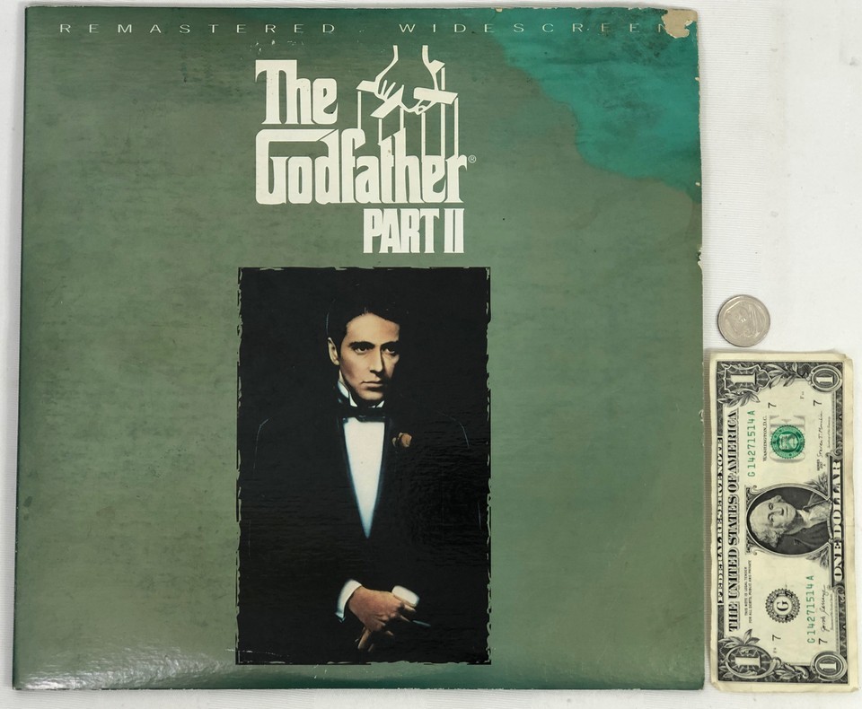 The Godfather II Laserdisc. Great deal on a classic movie that comes on a nice condition cleaned and inspected laserdisc. Perfect for collectors or movie enthusiasts. Beautifully kept for the age. Makes a wonderful gift or personal collectors item. Stars Al Pacino. Slight water damage to the top right corner of the sleeve (pictured) but discs are in excellent condition.
