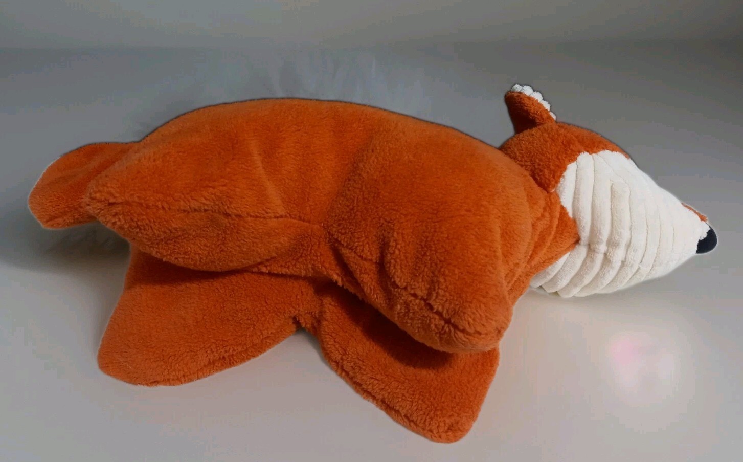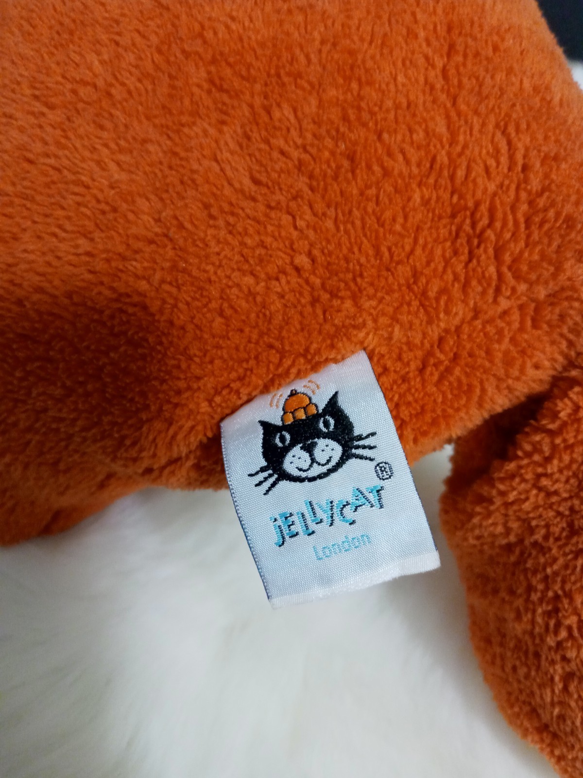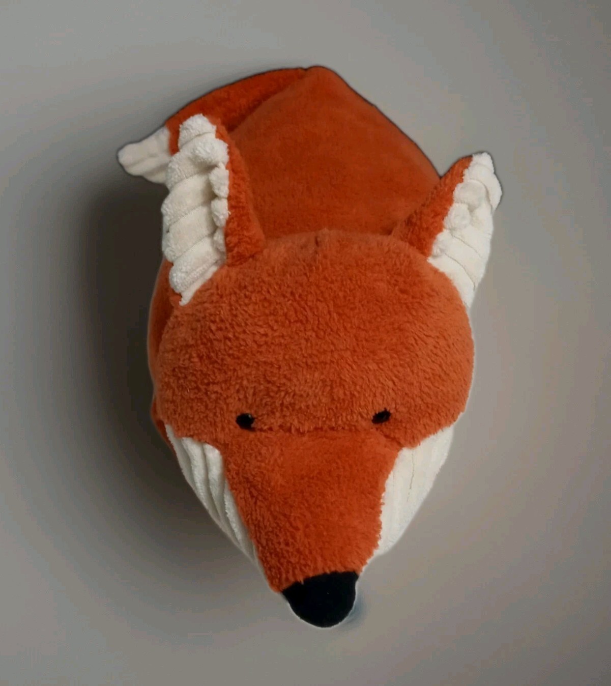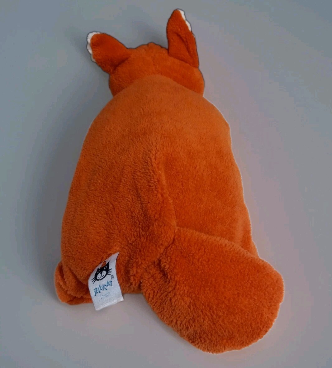 The Jellycat Snoozle Fox is a rare and sought-after plush toy with vibrant orange corduroy ears, mouth, and tail - item also has microbeads in his legs