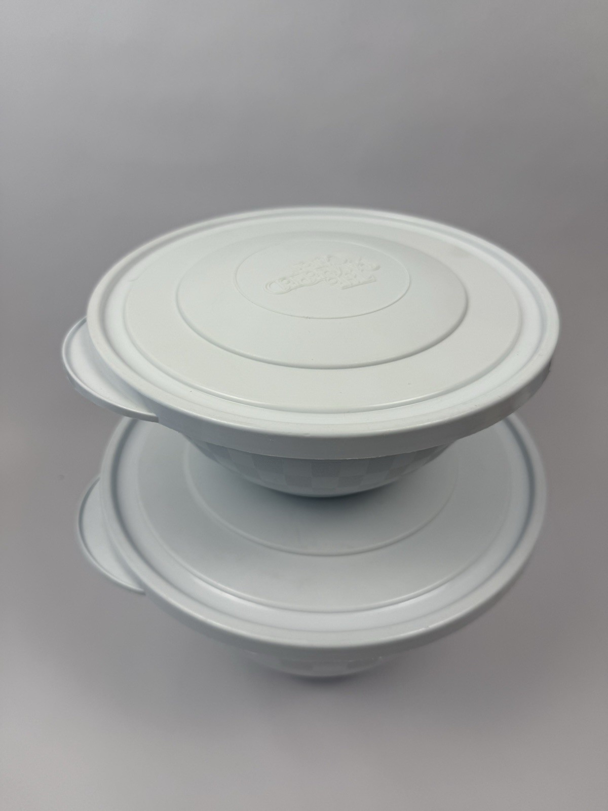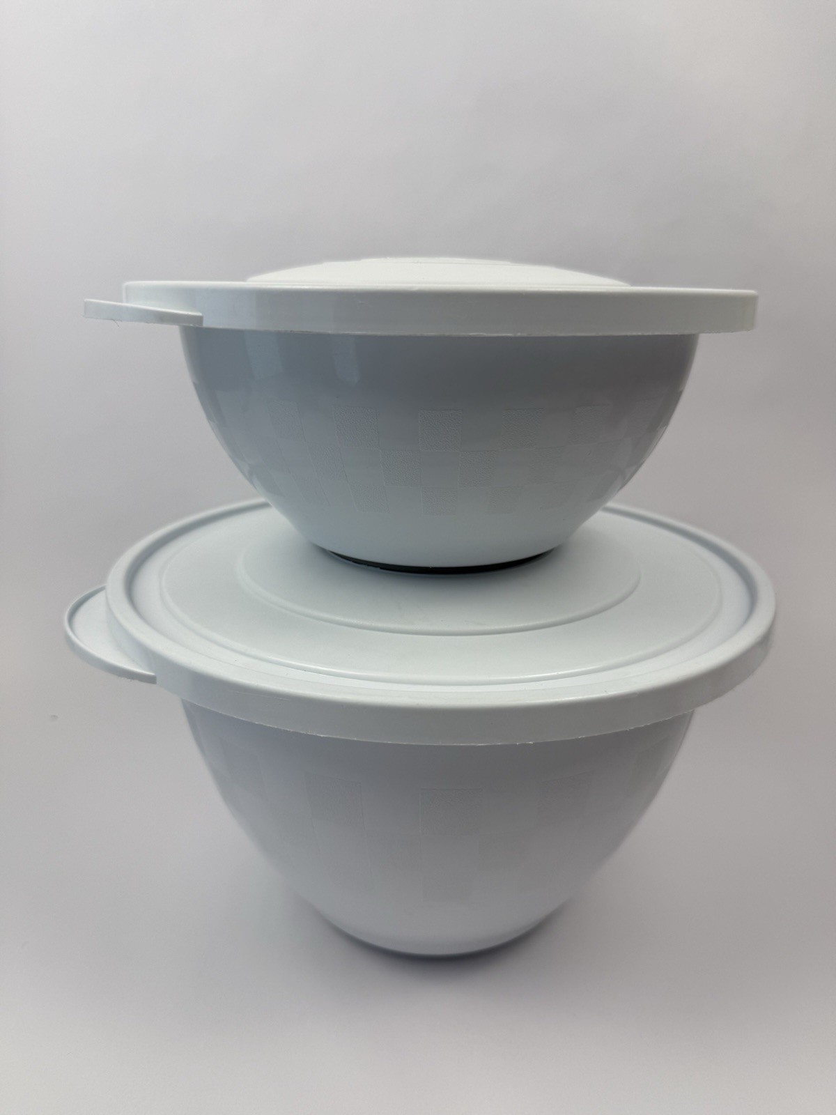 2 pc Set ~ THE PAMPERED CHEF White CheckerBoard Mixing Storage Bowls 10", 9"