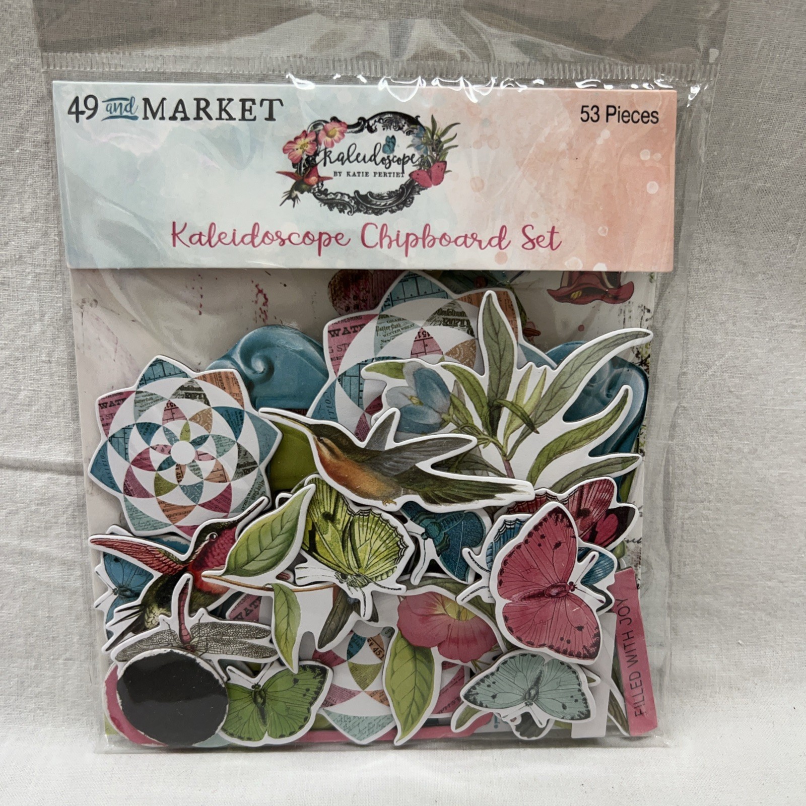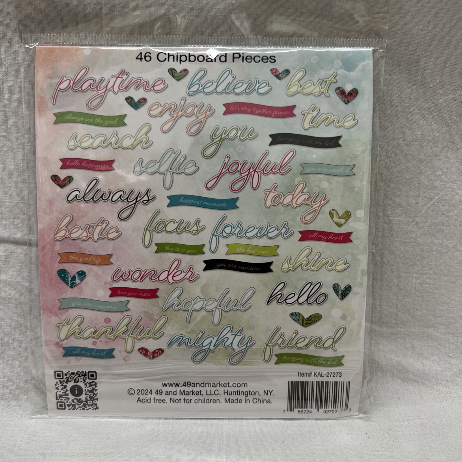 49 & Market Kaleidoscope 6 Pcs Laser Cuts Chipboard Words Frames Acetate Colors